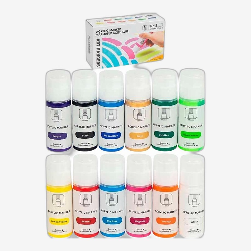 Акрилові маркери Art Rangers 12 кольорів, наконечник 18 мм, 60 мл