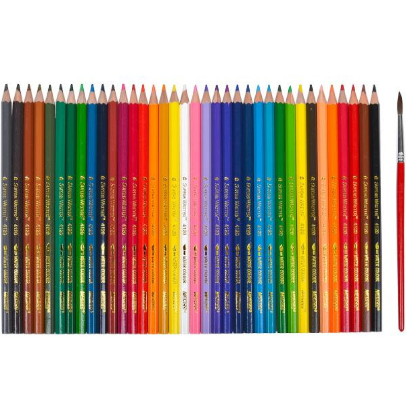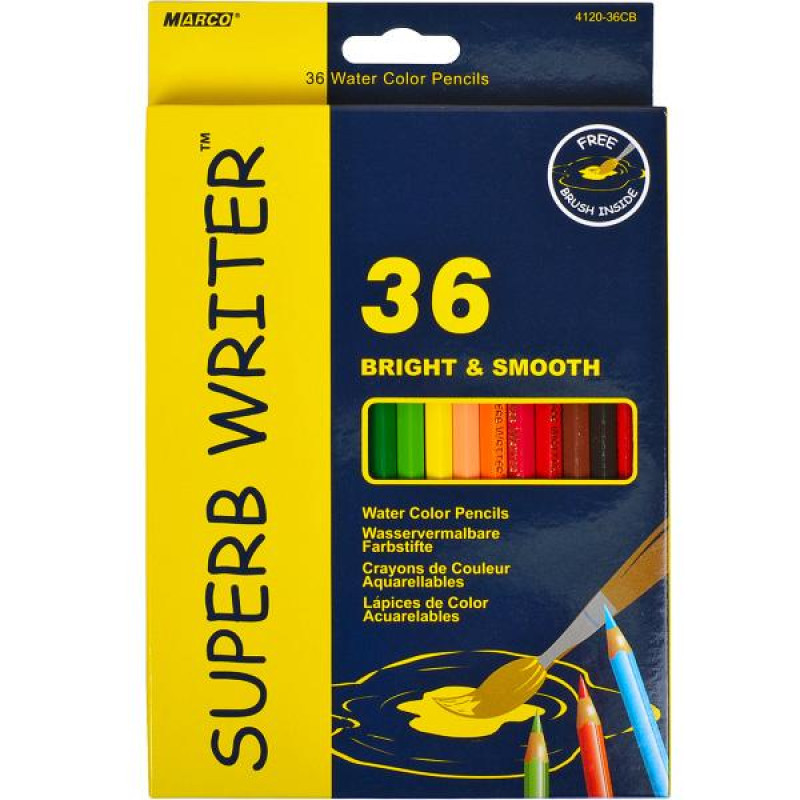 - Акварельні олівці Marco Superb Writer у наборі з 36 кольорів — працюють в сухій техніці та при змочуванні водою дають ефект справжньої акварелі. М'які грифелі легко наносяться й розчиняються пензлем. Універсальний інструмент для малювання у будь-якій техніці.