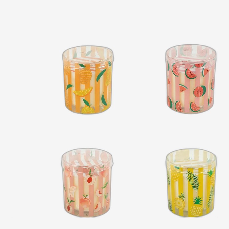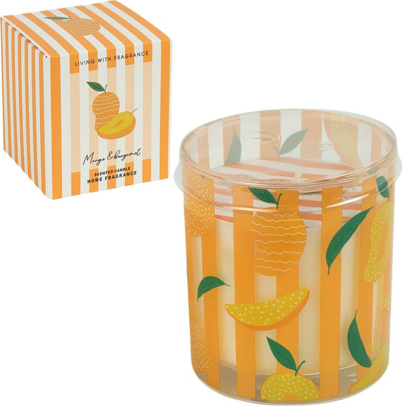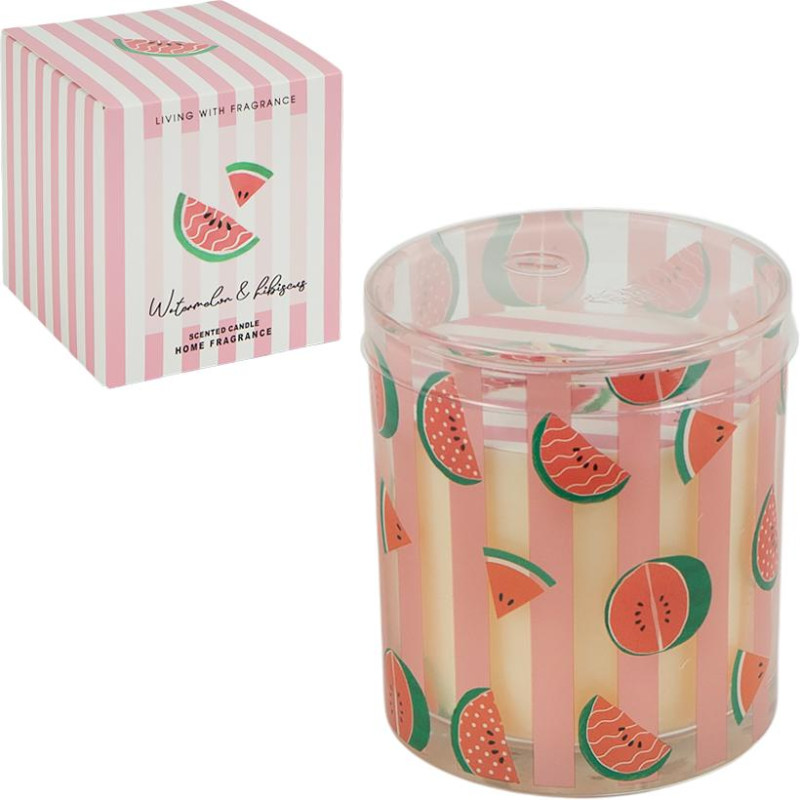 - Ароматична свічка вагою 400 г у скляному стакані з кришкою розміром 9×7,5 см — кришка зберігає аромат між використаннями. Виглядає як елегантний декоративний акцент на полиці або журнальному столику. Помірна інтенсивність аромату ненав'язлива для тривалого горіння.