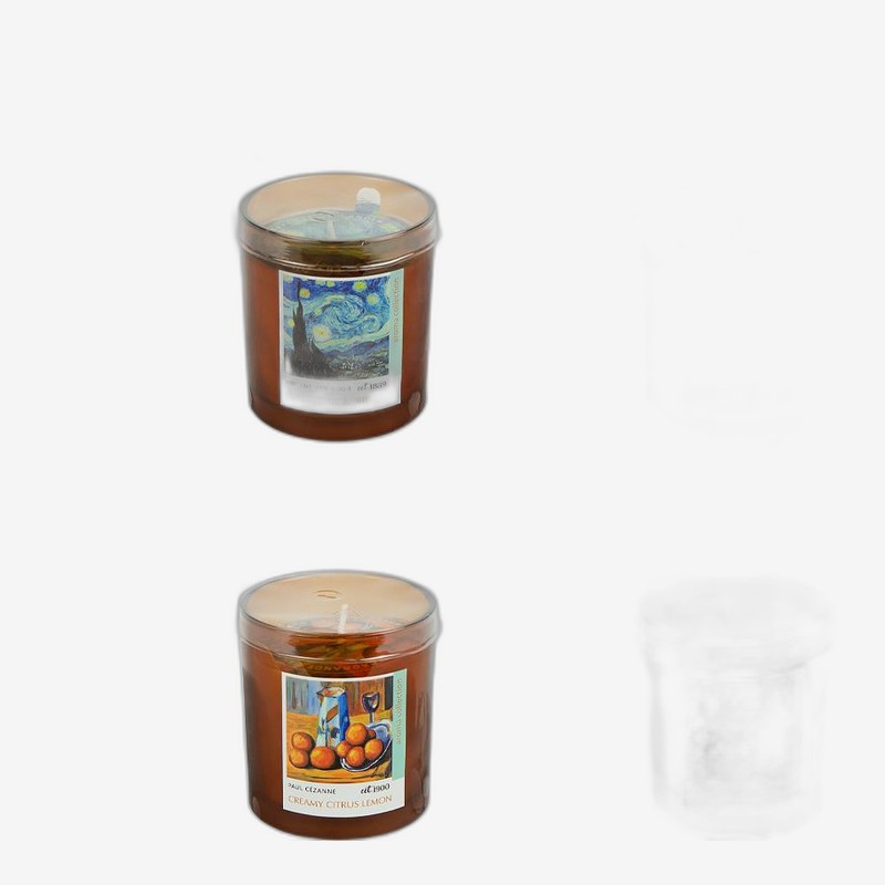 - Декоративна ароматична свічка «Pictures» вагою 460 г у фігурному скляному стакані 9×7 см із насиченим ароматом. Оригінальний дизайн стакана перетворює свічку на стильний подарунок або прикрасу інтер'єру. Рівне горіння без кіптяви завдяки центрованому ґноту.