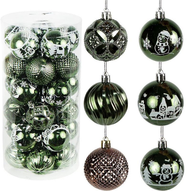 Ялинкові кульки 30 шт D6 см «Темно-зелений» у тубусі