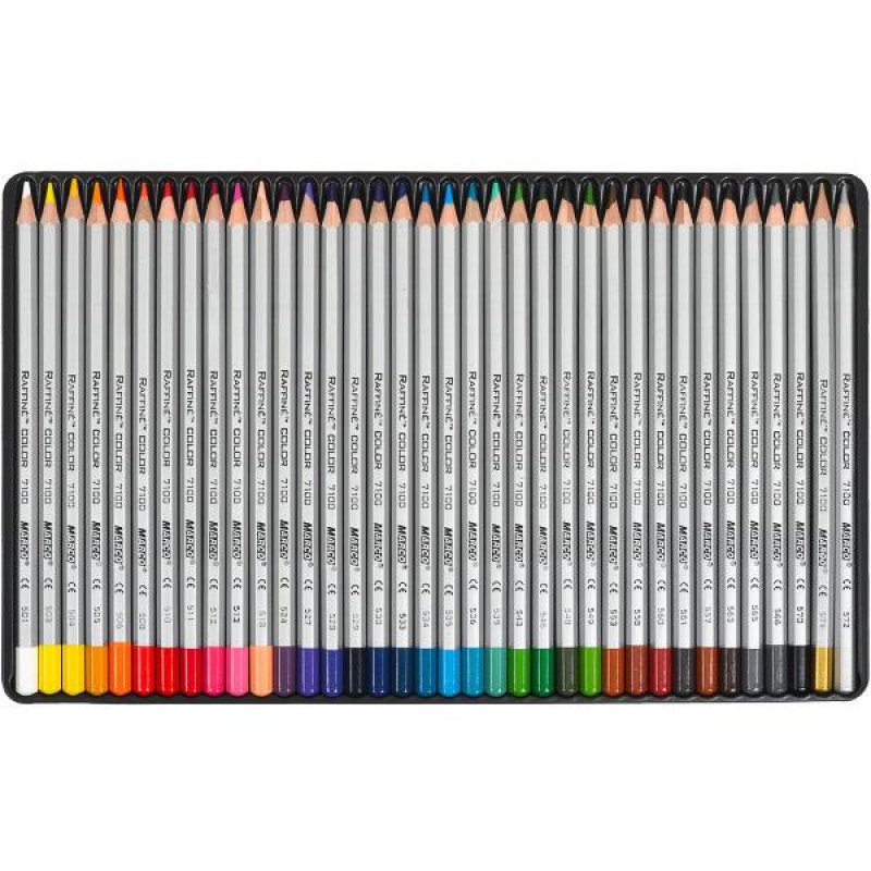 - 36 кольорових олівців Marco Raffine у міцній металевій коробці для творчих занять вдома та у школі. Стрижень добре тримає заточку та рівномірно малює без розривів. Металева коробка слугує надійним зберіганням для тривалого використання.