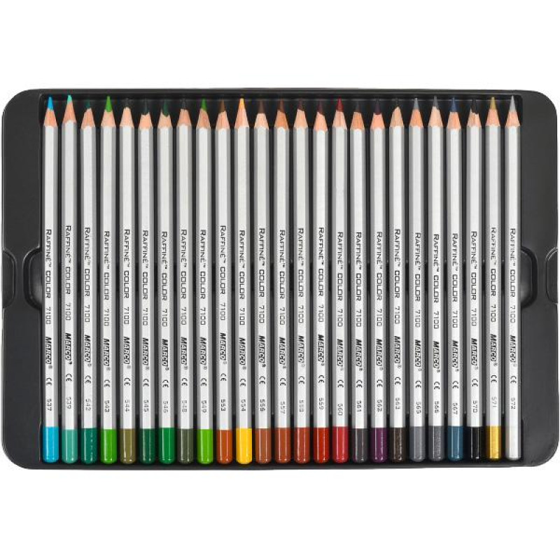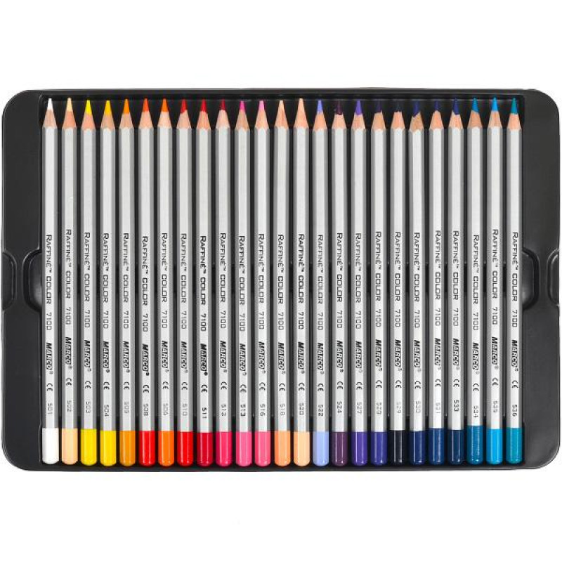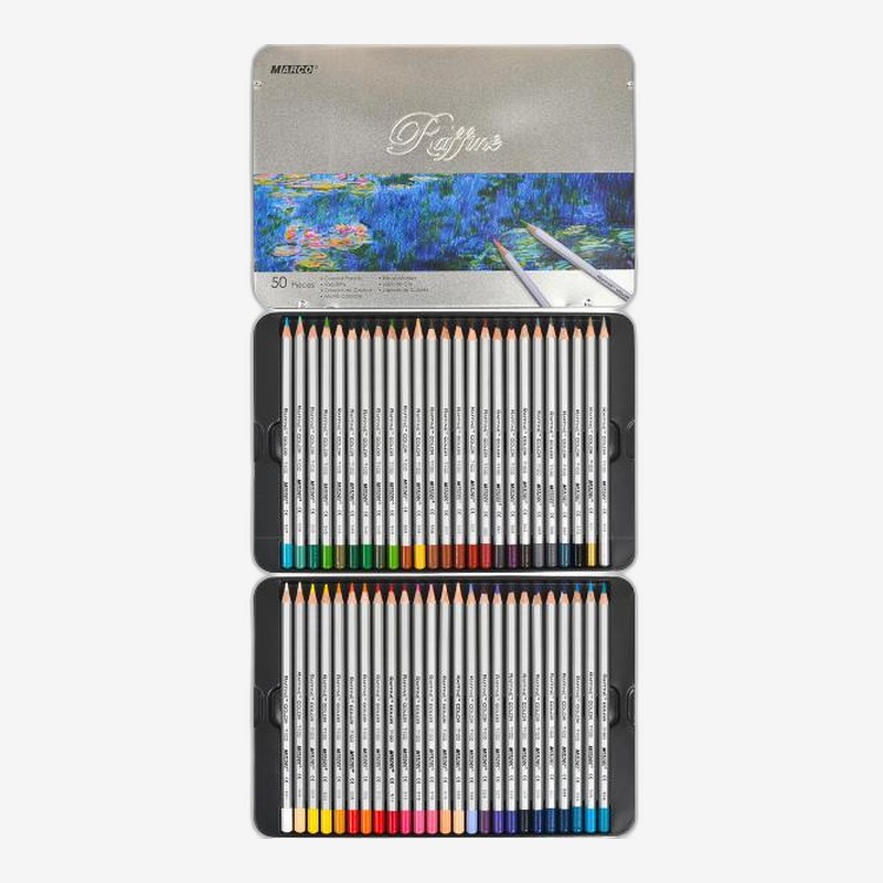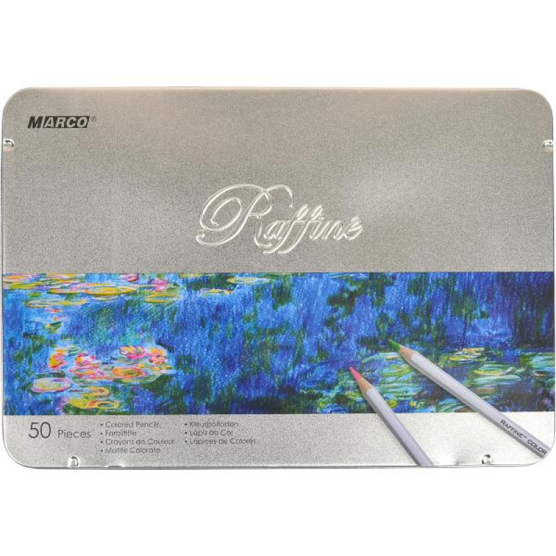 - Великий набір олівців Marco Raffine із 50 кольорами охоплює всю палітру відтінків для детального малювання. Якісний стрижень із насиченим пігментом дає рівне і яскраве забарвлення. Металева коробка зберігає олівці захищеними від поломки.