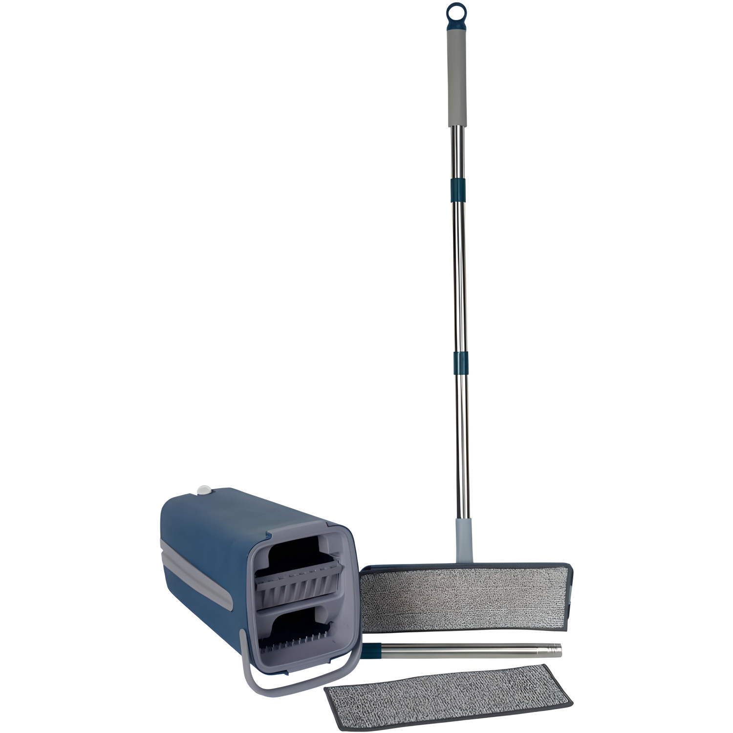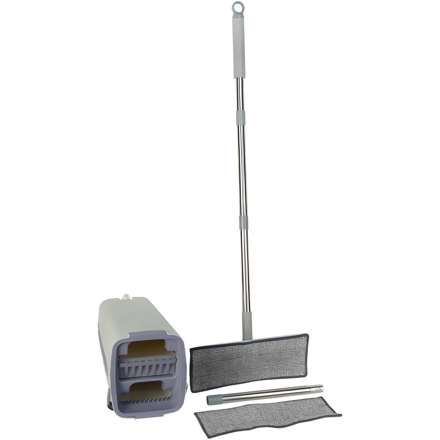 Набір для миття підлоги 330-3 включає відро об'ємом 38×21×18 см із вбудованим віджимним механізмом та швабру. Зручний віджим захищає руки від контакту з брудною водою та регулює вологість насадки. Ергономічна рукоять швабри знижує навантаження на спину під час прибирання.
