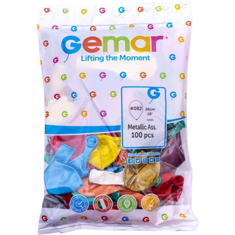 - Металеві кульки 10 дюймів із блискучим покриттям для розкішного оформлення весіль, ювілеїв і корпоративів. Щільний латекс із металевим ефектом добре тримає форму та виглядає ефектно у фотозонах. Підходять для надування гелієм і повітрям.