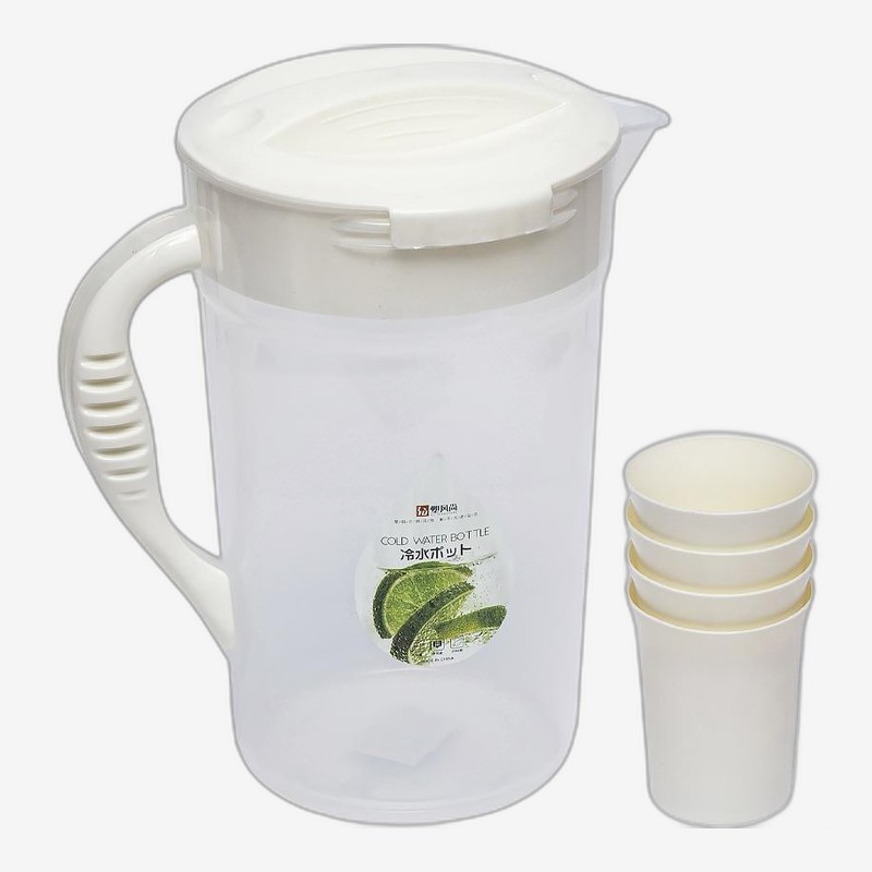 - Комплект для подачі напоїв: великий пластиковий глечик об'ємом 2,5 л і 4 стакани по 200 мл. Зручно для вечірок, пікніків і щоденного використання — все необхідне в одному наборі. Пластик безпечний для харчових продуктів, не б'ється.