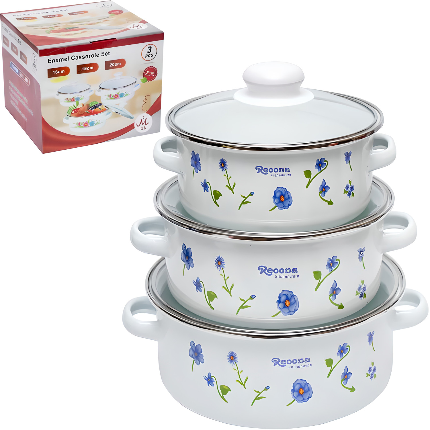 Набір емальованих каструль 3 шт 1,2/1,8/2,3 л з кришками