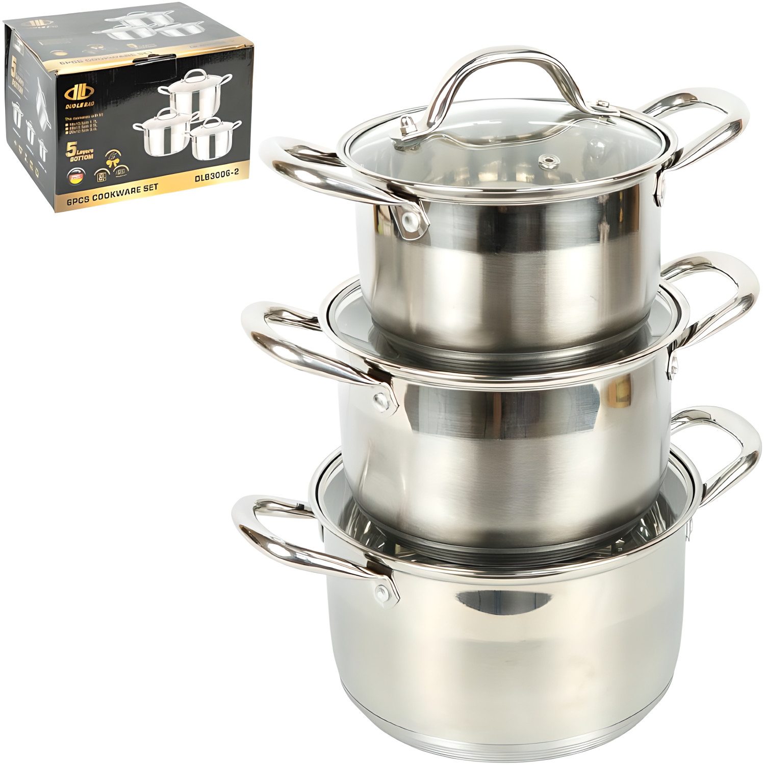 Набір каструль із нержавіючої сталі 3шт 1,7/2,5/3,4л із 5-шаровим дном та кришка