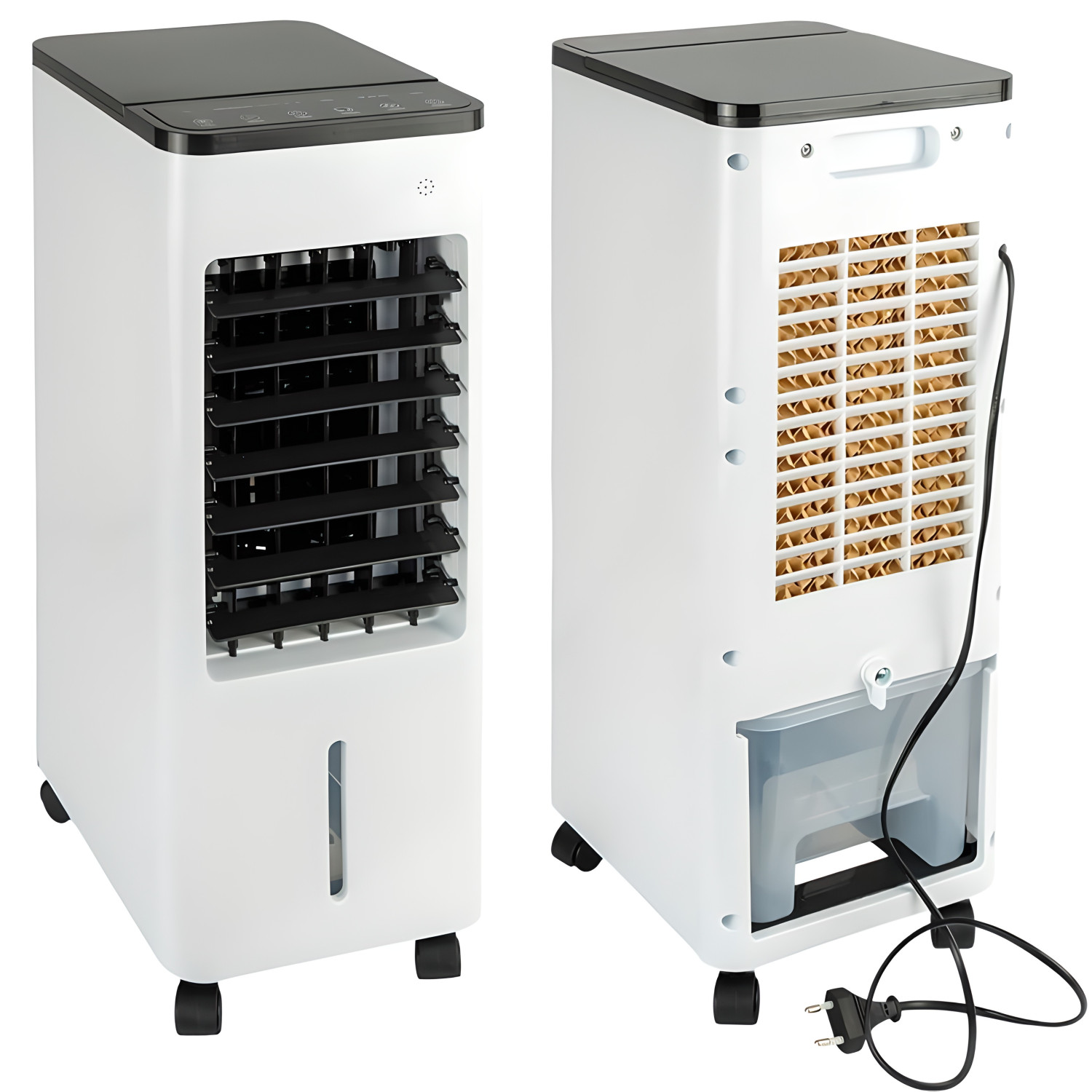Портативний кондиціонер призначений для охолодження, зволоження та циркуляції повітря в приміщенні. Працює на випарювальній технології без фреону. Резервуар 5,5 л забезпечує до 8 годин автономної роботи. 3 швидкості обдуву та таймер (30 хв, 1, 2, 4 год) дозволяють підібрати під будь-які умови.