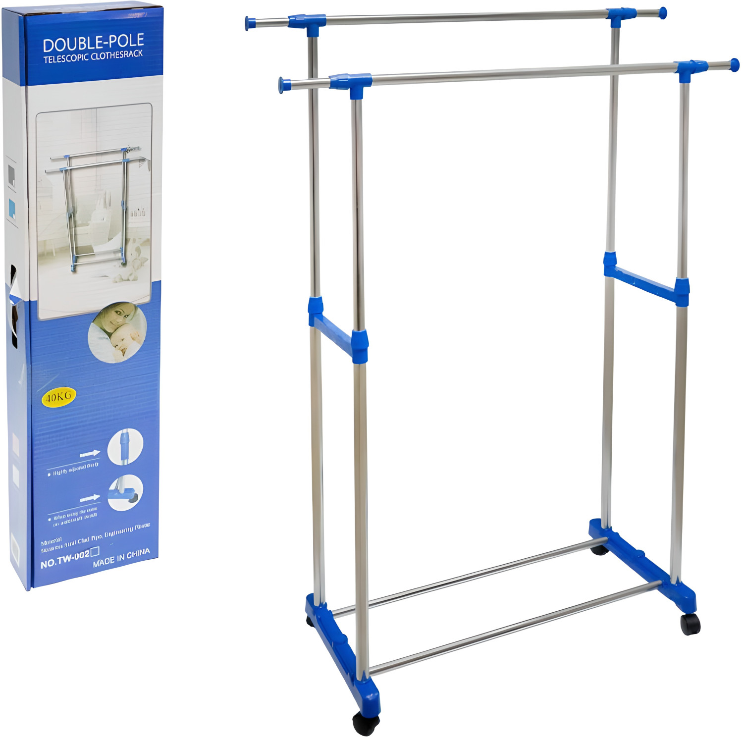 Велика подвійна стійка для одягу розміром 157×123×77 см з підвищеним навантаженням до 40 кг. Два рівні перекладин дозволяють розмістити значний обсяг одягу різної довжини. Підходить як стаціонарна альтернатива звичайному гардеробу в спальні або гардеробній.