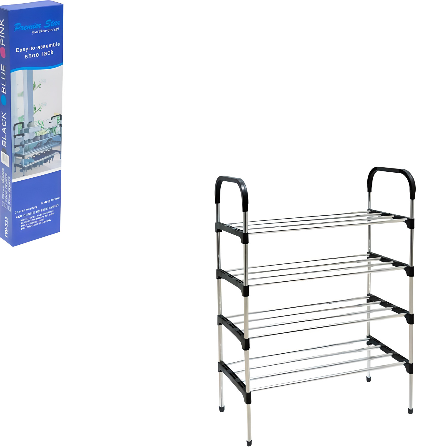 Чотириярусна полиця TW333-4 вміщує до 8 пар взуття та займає мінімум місця в коридорі. Металева конструкція стійка та легко збирається без інструментів. Розміри: 54×28×87 см.