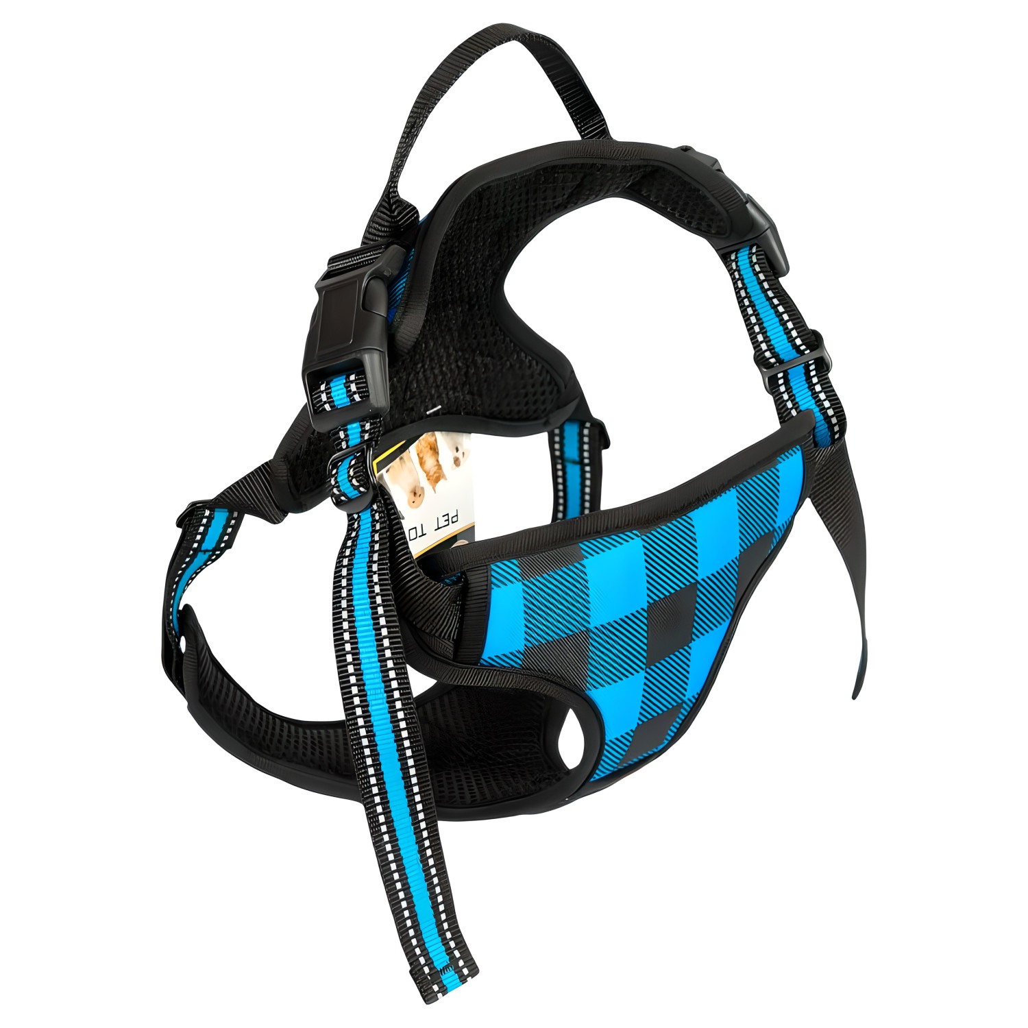 Шлея розміру L для великих порід собак із регульованими ременями і посиленою стропою для надійного утримання. Зручні застібки дозволяють швидко одягати та знімати шлею. Безпечна конструкція без тиску на горло тварини.