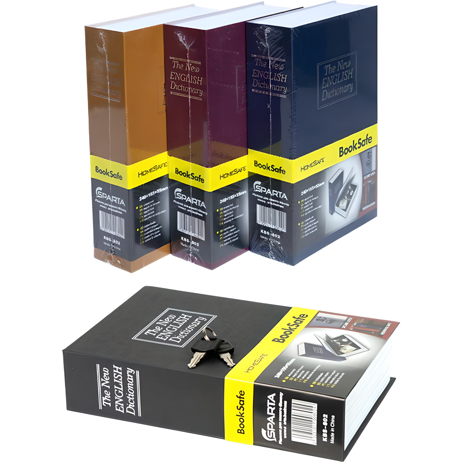 Великий сейф-книга розміром 26,5×20×6,5 см для прихованого та надійного зберігання цінних предметів. Збільшений об'єм вміщує більше цінностей — паспорти, гроші, карти пам'яті та прикраси. Виглядає як звичайна книга на полиці, не привертаючи уваги.