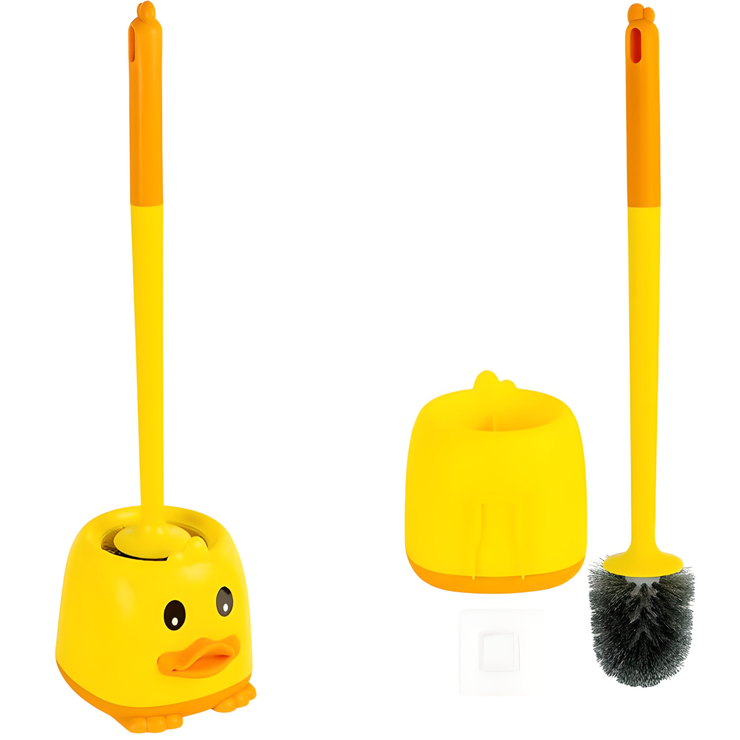 - Йоржик для унітазу «Утенок» висотою 52 см із закритою підставкою, яка приховує щітку та запобігає розповсюдженню бруду. Щетина ефективно очищає під ободом і на дні унітазу, тримак зручно лежить у руці. Компактна підставка стійко стоїть на підлозі.