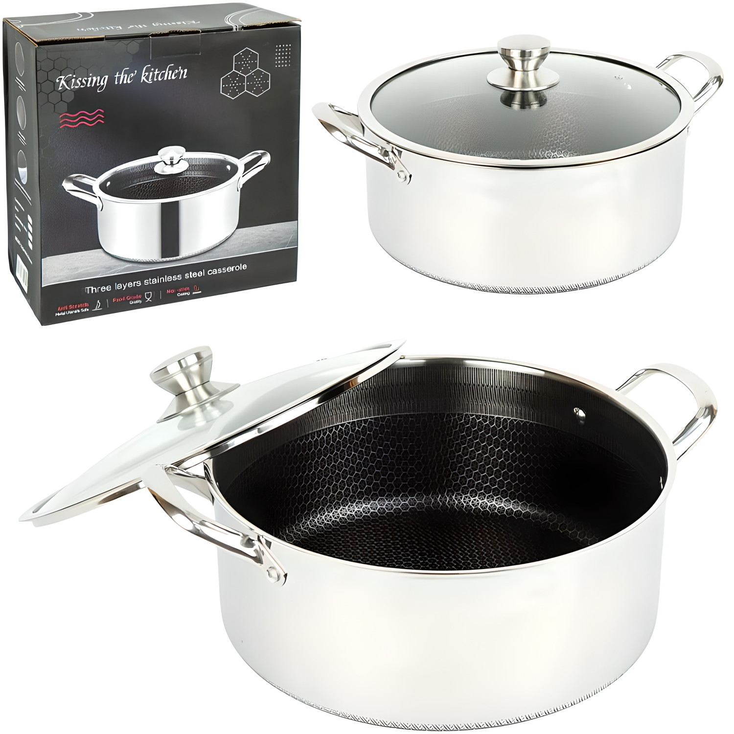 Каструля зі сталі діаметром 30 см і об'ємом 7 літрів із шестишаровим антипригарним покриттям для готування перших страв і великих порцій. Міцний матеріал і багатошарове покриття забезпечують довговічність і легке очищення. Сумісна з усіма типами плит, включно з індукцією.