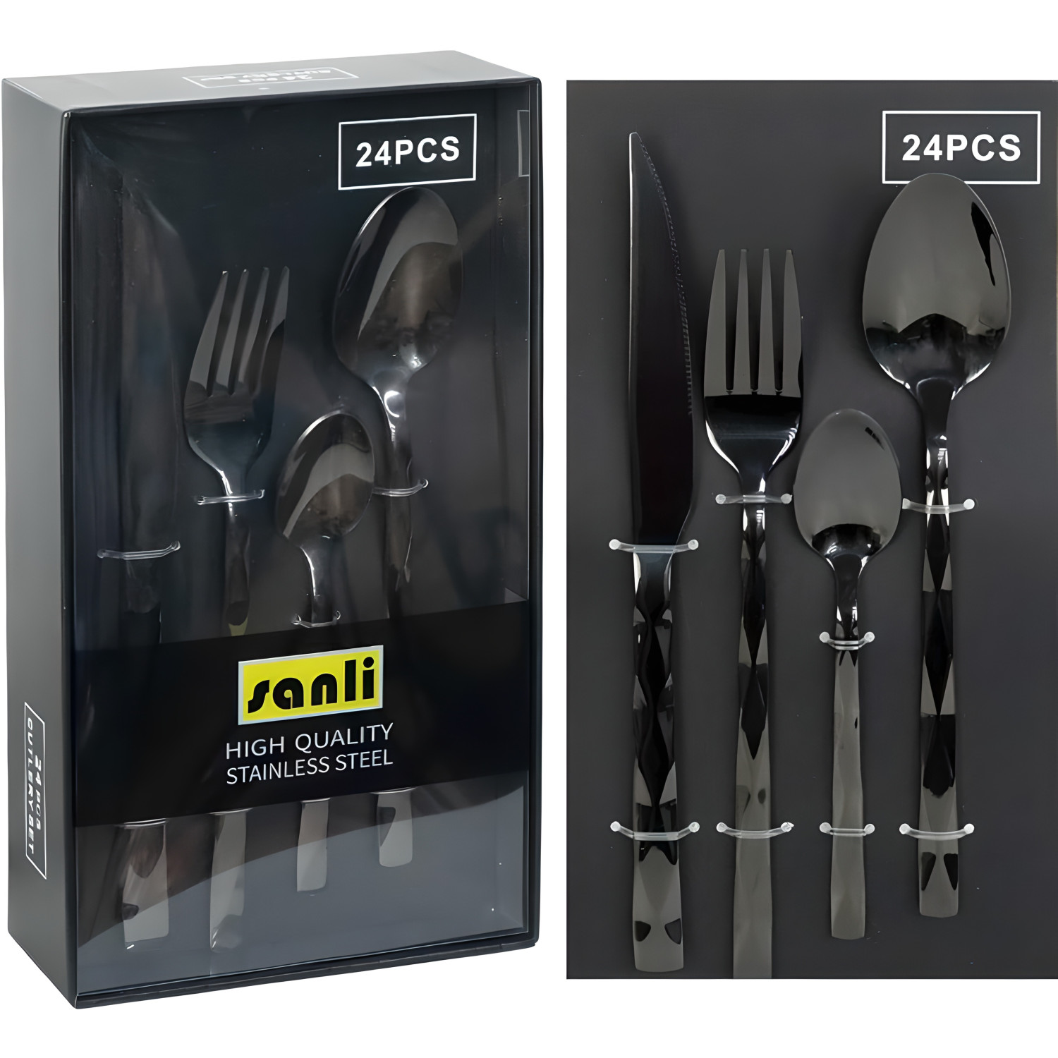 Набір містить 24 предмети: 6 столових виделок, 6 ножів, 6 столових ложок та 6 чайних ложок. Це повний сервіз на шість персон для щоденного використання та святкових прийомів.