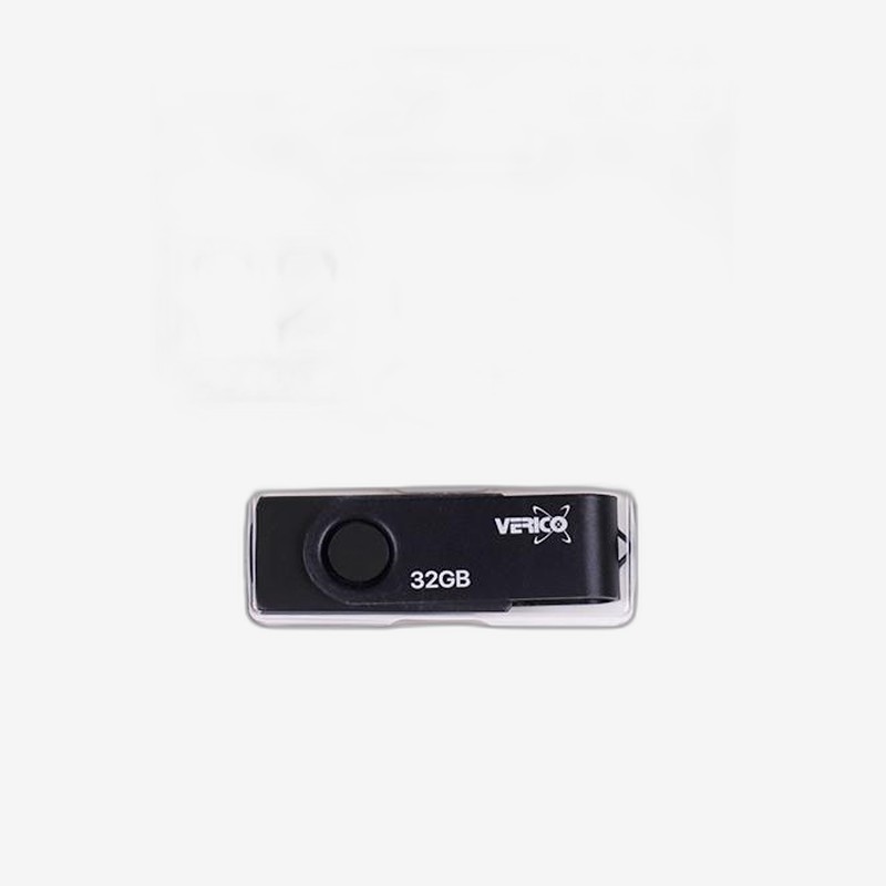 - Флешка Verico Flip ємністю 32 ГБ у чорному виконанні. Зручне відкидне кріплення захищає роз'єм від забруднення і пошкодження. Надійна для зберігання та перенесення файлів.