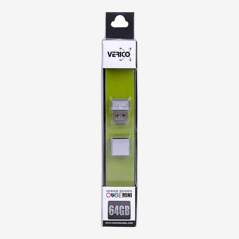 - Флешка Verico MiniCube ємністю 64 ГБ у сріблястому кольорі — ультракомпактна з великим обсягом. Стильна і функціональна — зручно завжди мати при собі. Стандартний USB-роз'єм.
