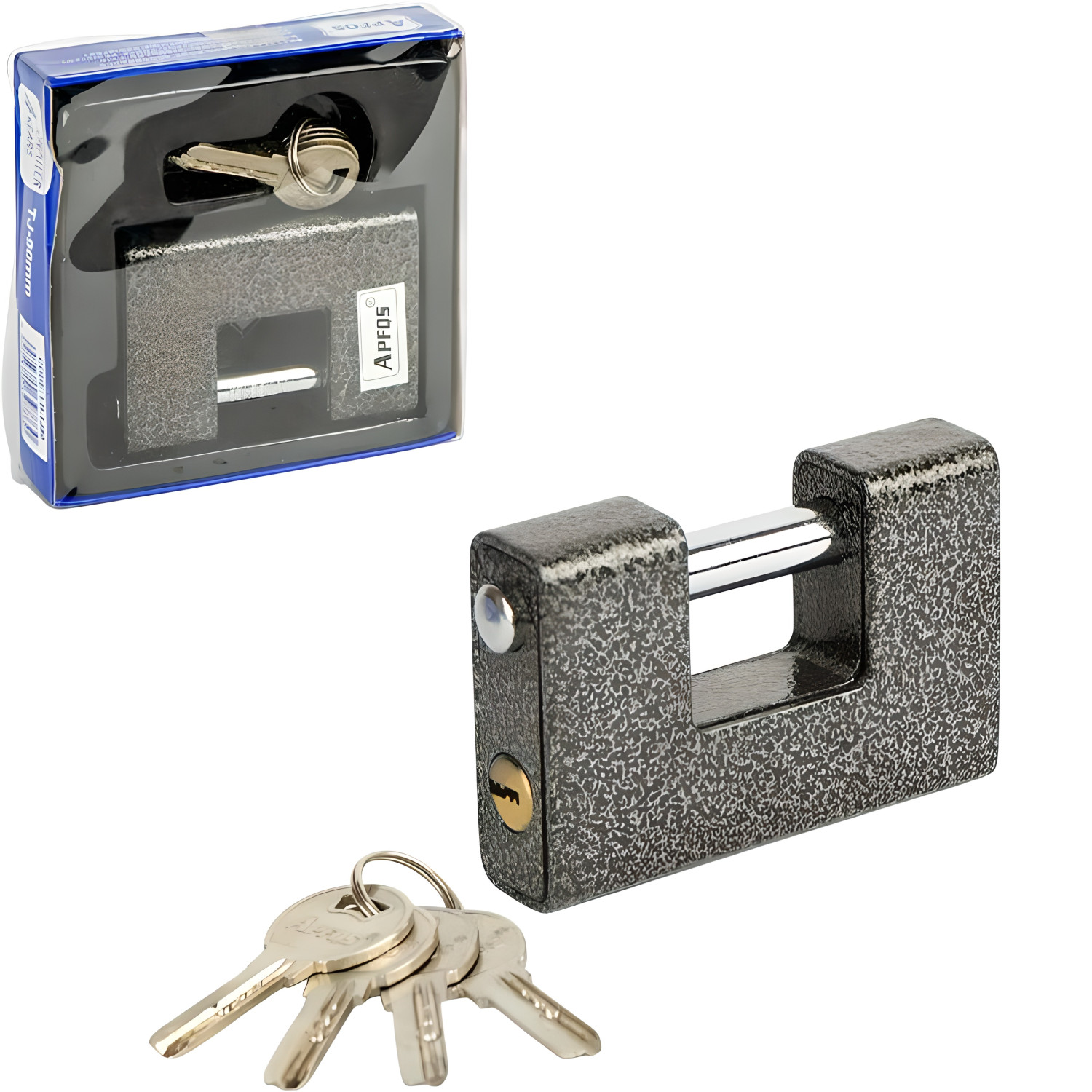 - Навісний замок LH-TJ90 із захистом дужки напівзакритого типу розміром 90 мм. Масивний металевий корпус і захисна скоба навколо дужки захищають від злому болторізами. Надійний механізм для комор, воріт, гаражів і складів, у комплекті 2 ключі.