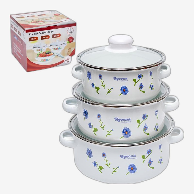 Набор эмалированных кастрюль 3шт 1,2/1,8/2,3л с крышками D16/18/20см 111DG-5086