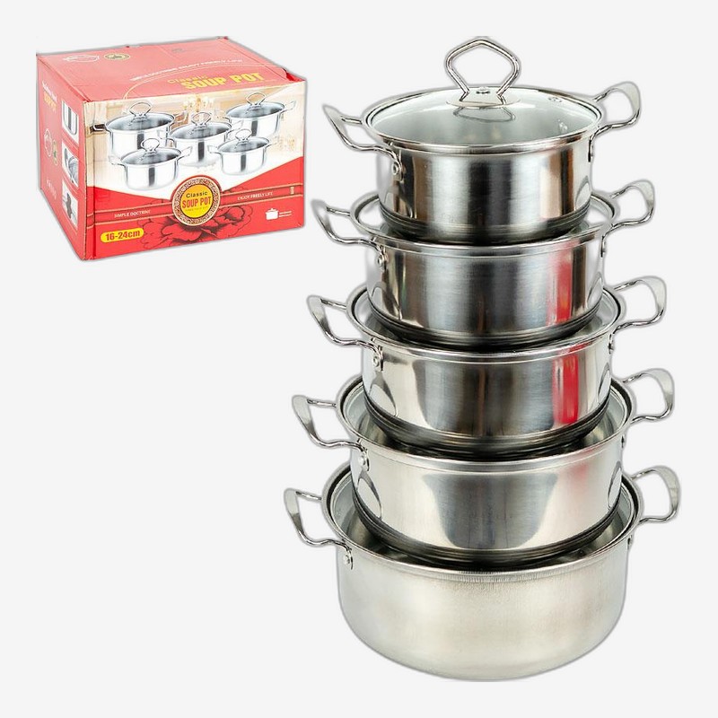 - Набор кастрюль из нержавеющей стали 5шт 1/1,5/2/2,5/3л с крышками D16/18/20/22/24см 898-8 — купить в Китайке Набор кастрюль из нержавеющей стали подходит для приготовления супов, гарниров и других блюд. В комплект входит 5 кастрюль объемом 1 л, 1,5 л, 2 л, 2,5 л и 3 л. Диаметр составляет 16 см, 18 с...