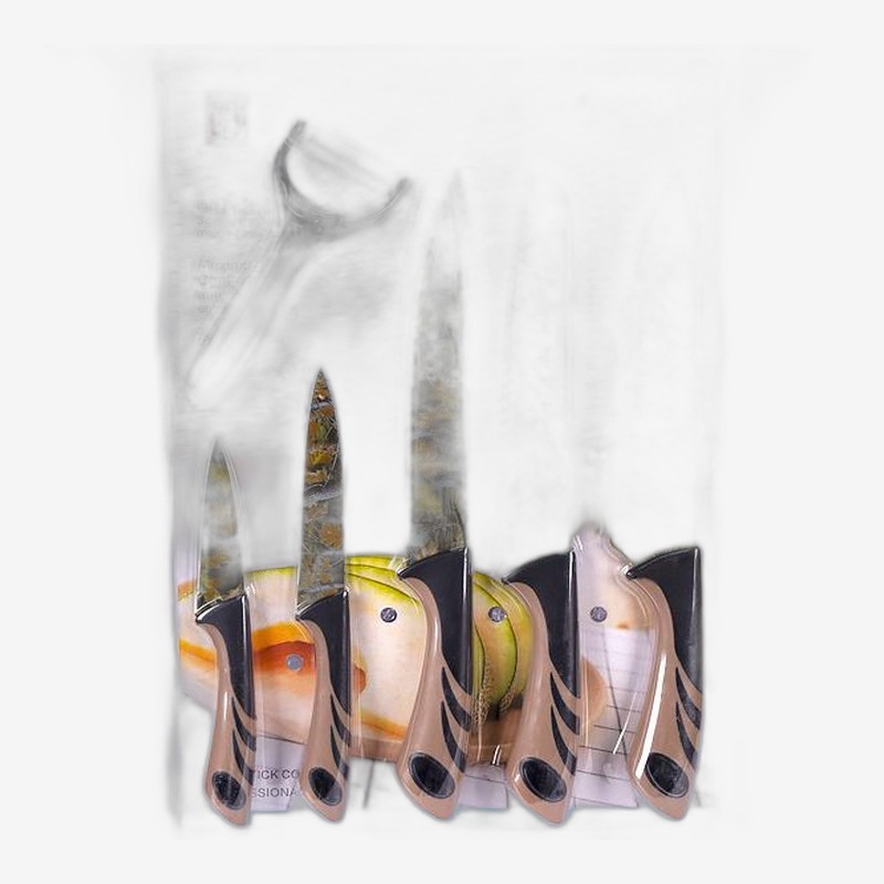 - Набор ножей из нержавеющей стали 5шт с овощечисткой на блистере — купить в Китайке Набор включает 6 предметов: горизонтальная овощечистка и 5 ножей. Лезвия имеют размеры 20 см, 19 см, 19 см, 12,5 см и 8,5 см. Изготовлены из металла и пластика. Упаковка в блистере размером 27*40 см. Расцветки ножей п...