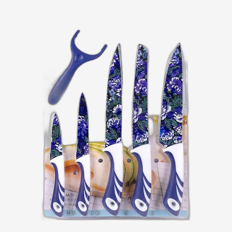 - Набор ножей из нержавеющей стали 5шт с овощечисткой на блистере — купить в Китайке Этот набор включает в себя шесть цветных предметов: одну горизонтальную овощечистку и пять ножей. Представлены различные расцветки. Изготовлены из нержавеющей стали и пластика. Размер блистера составляет 27*40 см. Дли...