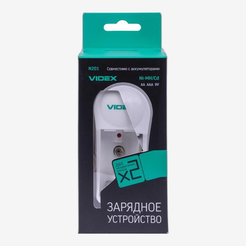 • Зарядное устройство №201 Videx — купить в Китайке Зарядное устройство Videx №201 подходит для аккумуляторов AA, AAA и 9V типа Ni-MH и Ni-Cd. Может заряжать от 1 до 2 аккумуляторов одновременно. Имеет индикатор зарядки. Входное напряжение: AC 100-240V, 50/60Hz, 0,5W. Выход: DC 1,25V - 200mA для 2 AA,...