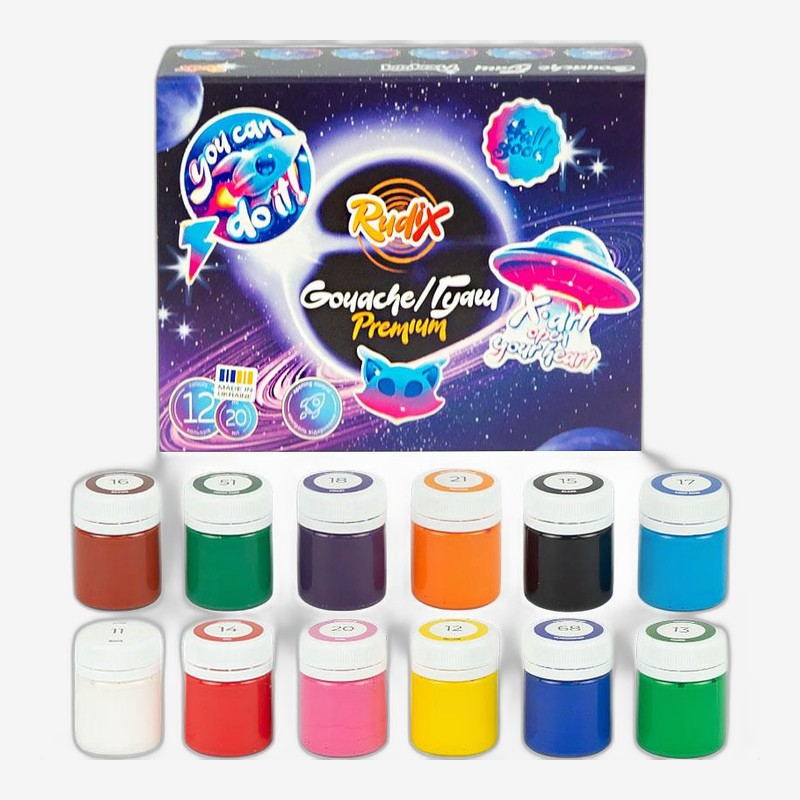 • Набор гуашевых красок, премиум,12*20 мл, RUDIX — купить в Китайке Универсальный набор гуашевых красок — отличный выбор для творчества дома, в школе или студии. В комплект входят 12 ярких и насыщенных цветов в баночках по 20 мл. Краски имеют густую, кремовую текстуру, хорошо укрывают поверхность, лег...