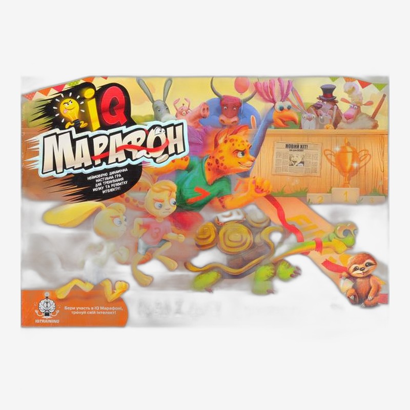- Настільна гра "IQ Марафон" укр G-IQM-01-01U — купить в Китайке Настольная игра "IQ Марафон" украиноязычное оформление - динамичная игра для тренировки мозга и развития интеллекта! Возраст 6+. В наборе: игровые карточки 112шт, кубик 1шт, фишки 4шт, игровое поле, песочные часы, правила. Размер упаковк...