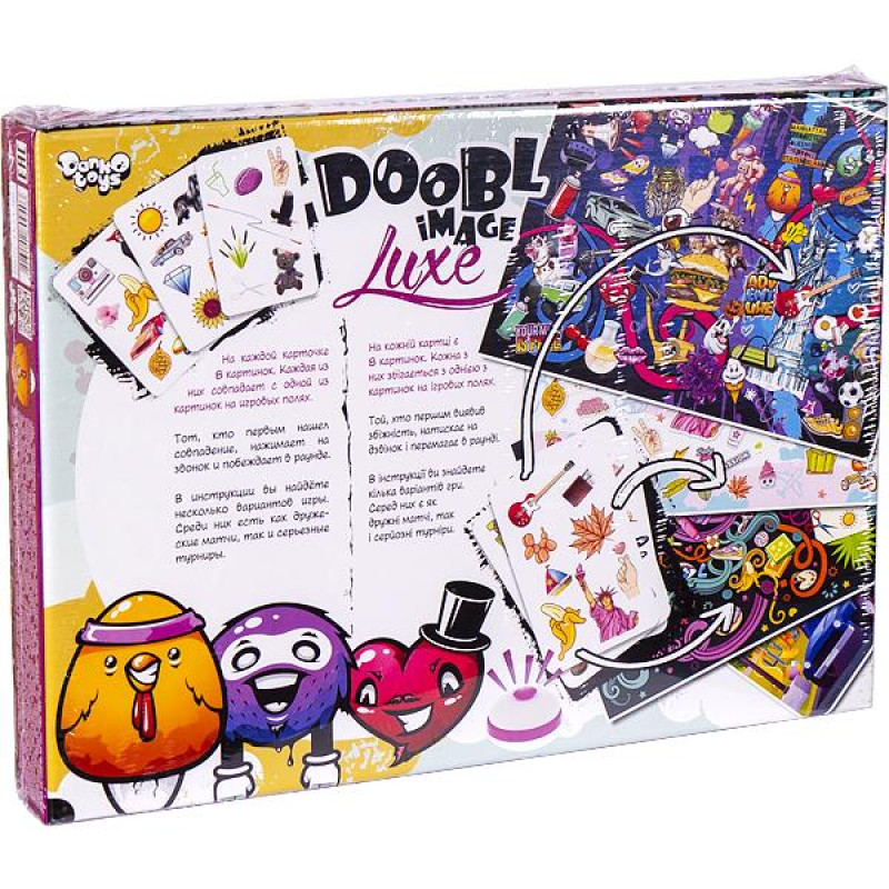 • Настольная розвлекательная игра "Doobl Image Luxe" — купить в Китайке В комплекте 56 игровых карточек с 8 изображениями на каждой. Игроки ищут совпадения с картинками на игровом поле. Первый, кто находит совпадение, нажимает на звонок и выигрывает раунд. Инструкция включает разные варианты игры. Упа...