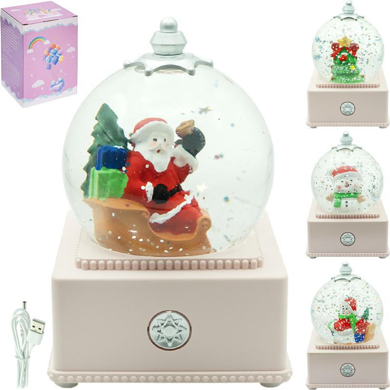 Снежный шар новогодний D8см с автоснегом и подсветкой