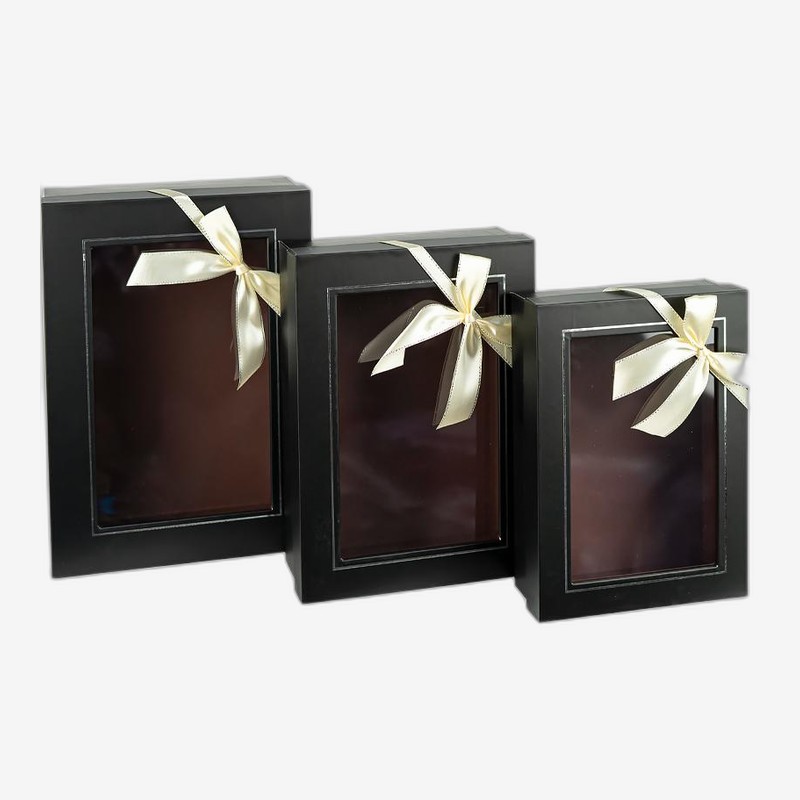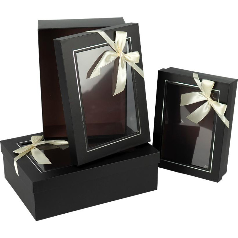 - Набор подарочных коробок 3 шт BLACK 0540-2/HL-236 — описание и характеристики Набор подарочных коробок черных 3 шт. Размеры — 29×21×9,5 см, 25,5×18,5×8 см и 22,5×16,5×6 см. Коробки жёсткой конструкции, вкладываются одна в другую и дополнительно упакованы в плёнку, что удобно для хранения и транспорт...