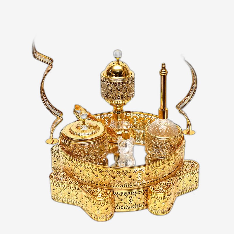 • Набор для чаепития золотой на подставке B22J3134 — купить в Китайке Набор для чаепития на подставке оснащенной зеркальным дном. В наборе : сахарница, щипцы , сосуд для аромо свечи, 2 сосуда для аромо эссенций, подставка. Цвет золото, материал стекло, металл Характеристики Производитель: КитайкаС...