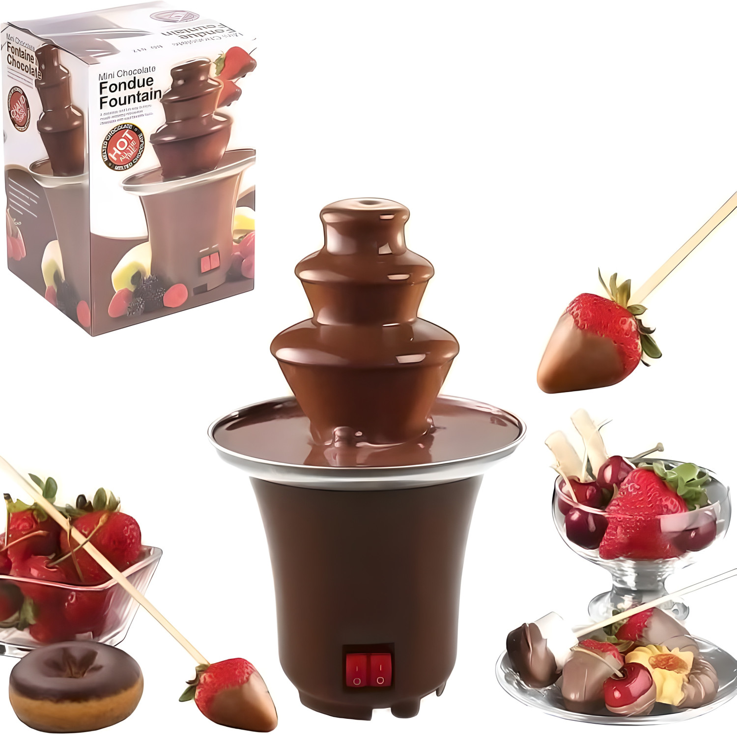 - Каскадная конструкция обеспечивает равномерную циркуляцию шоколада и подходит для подачи фруктов, печенья и других десертов.