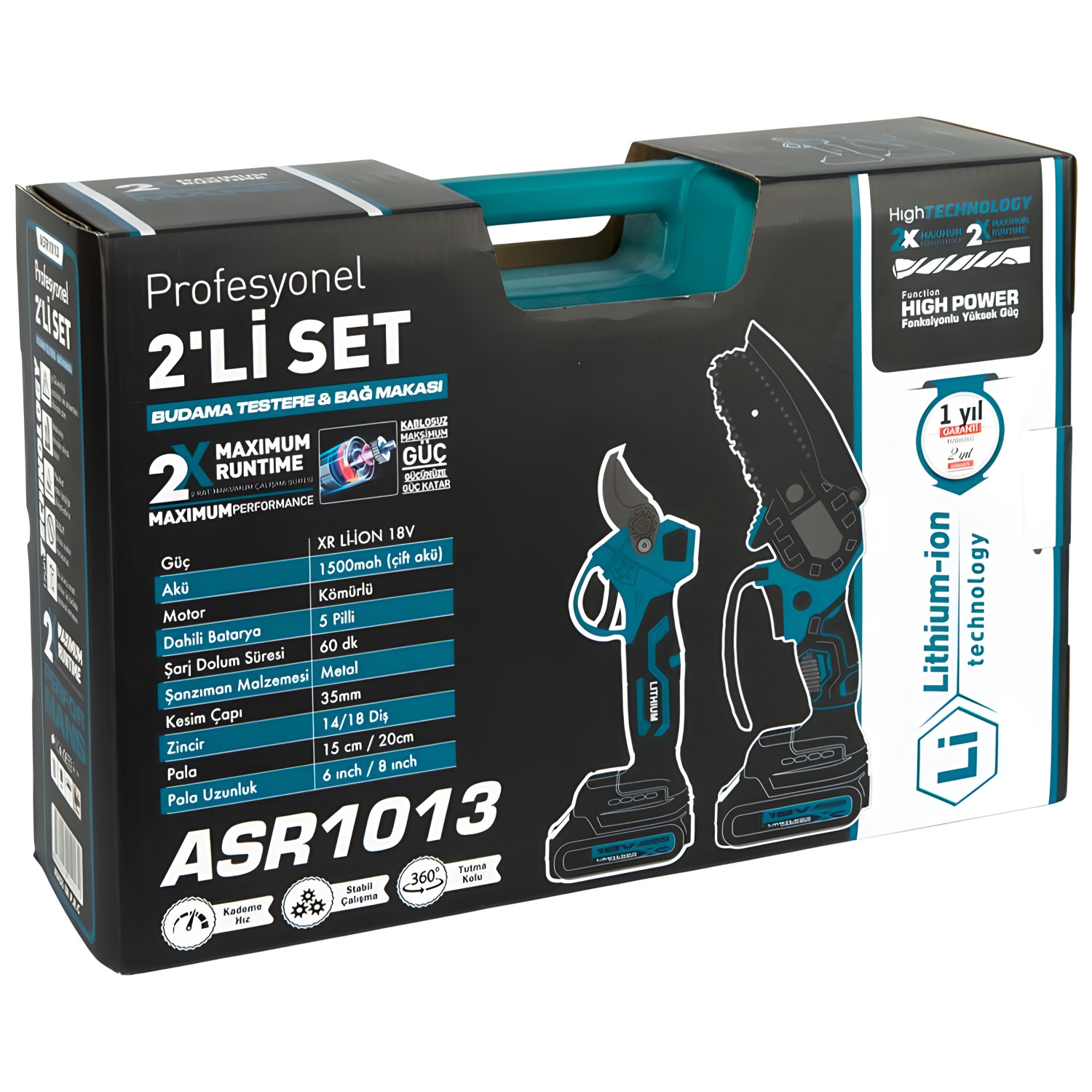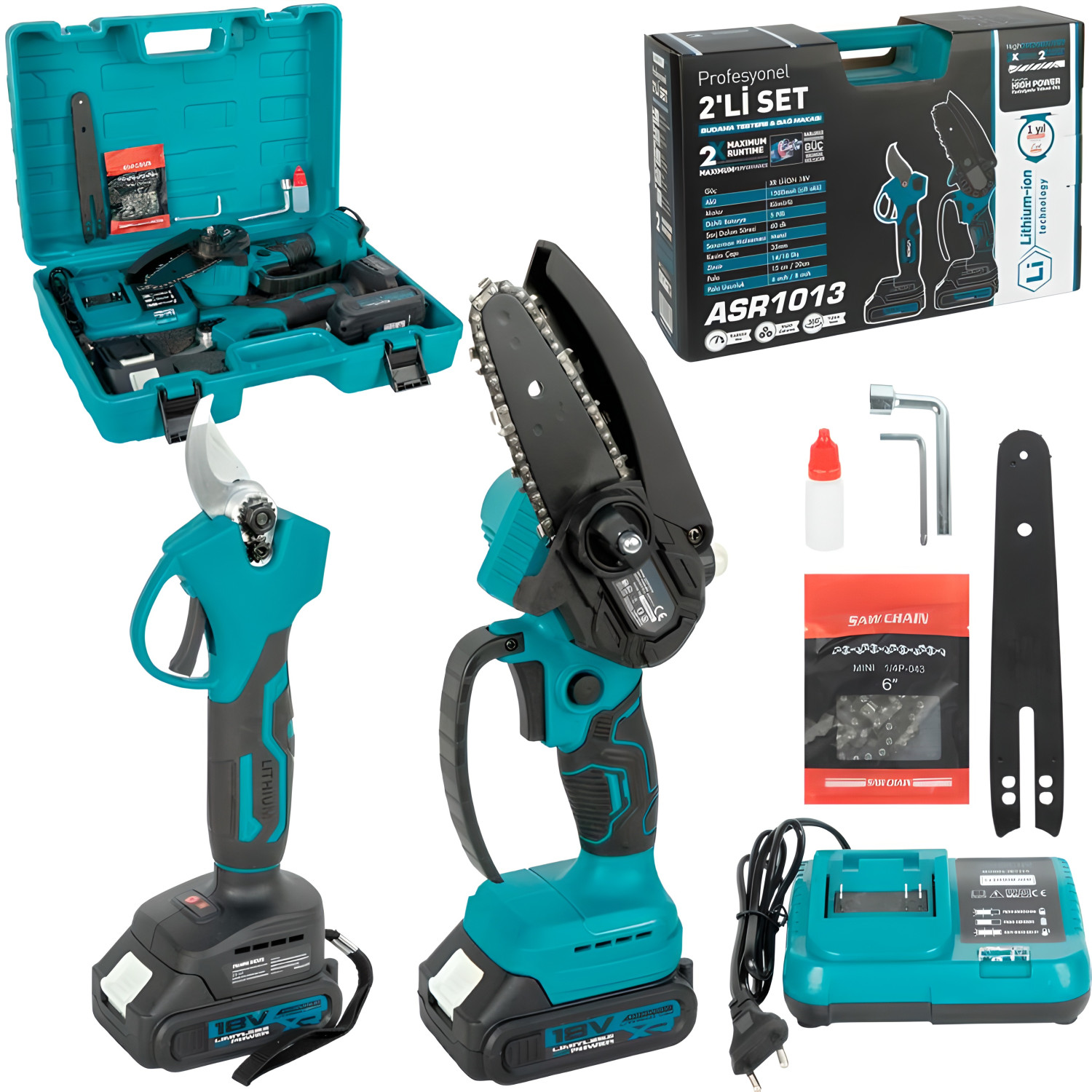 Набор аккумуляторных инструментов 2-в-1: цепная мини-пила и секатор в кейсе + коробка (ASR1013) — описание и характеристики