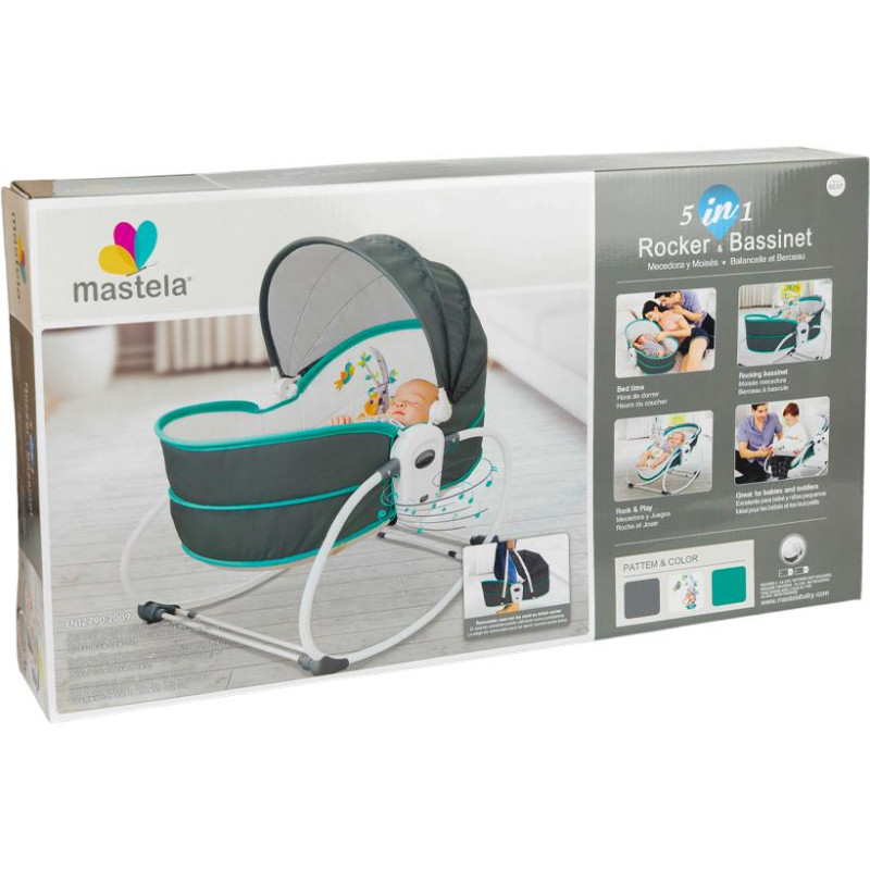 Многофункциональная люлька-качалка 5-в-1 для новорождённых, с вибрацией и капюшоном (Mastela 6037) серо-голубая
