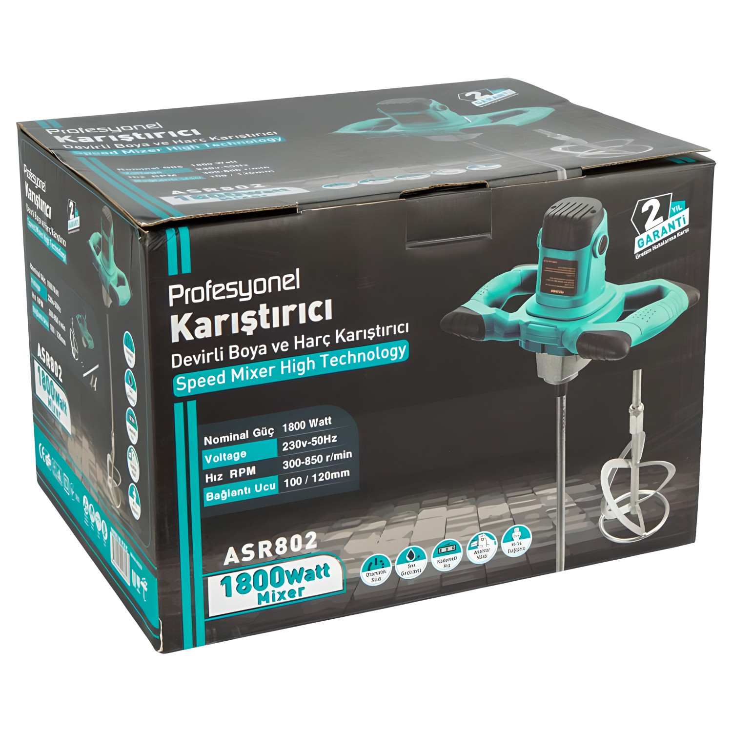 Строительный электрический миксер, 1800 Вт, с регулировкой оборотов (ASR802) — описание и характеристики