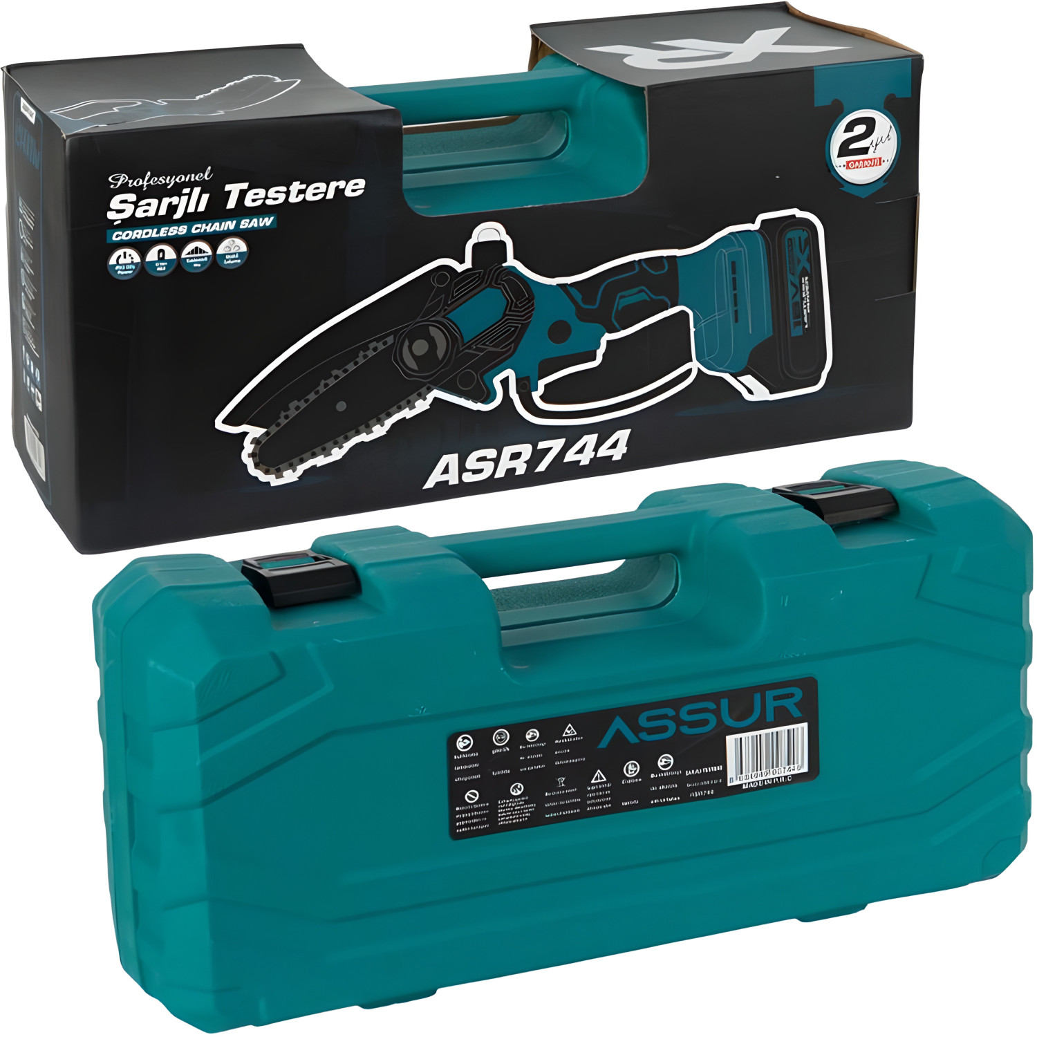 Аккумуляторная мини-цепная пила 18V, шина 4″ + 6″, 15/20 см, кейс + коробка (ASR744) — описание и характеристики