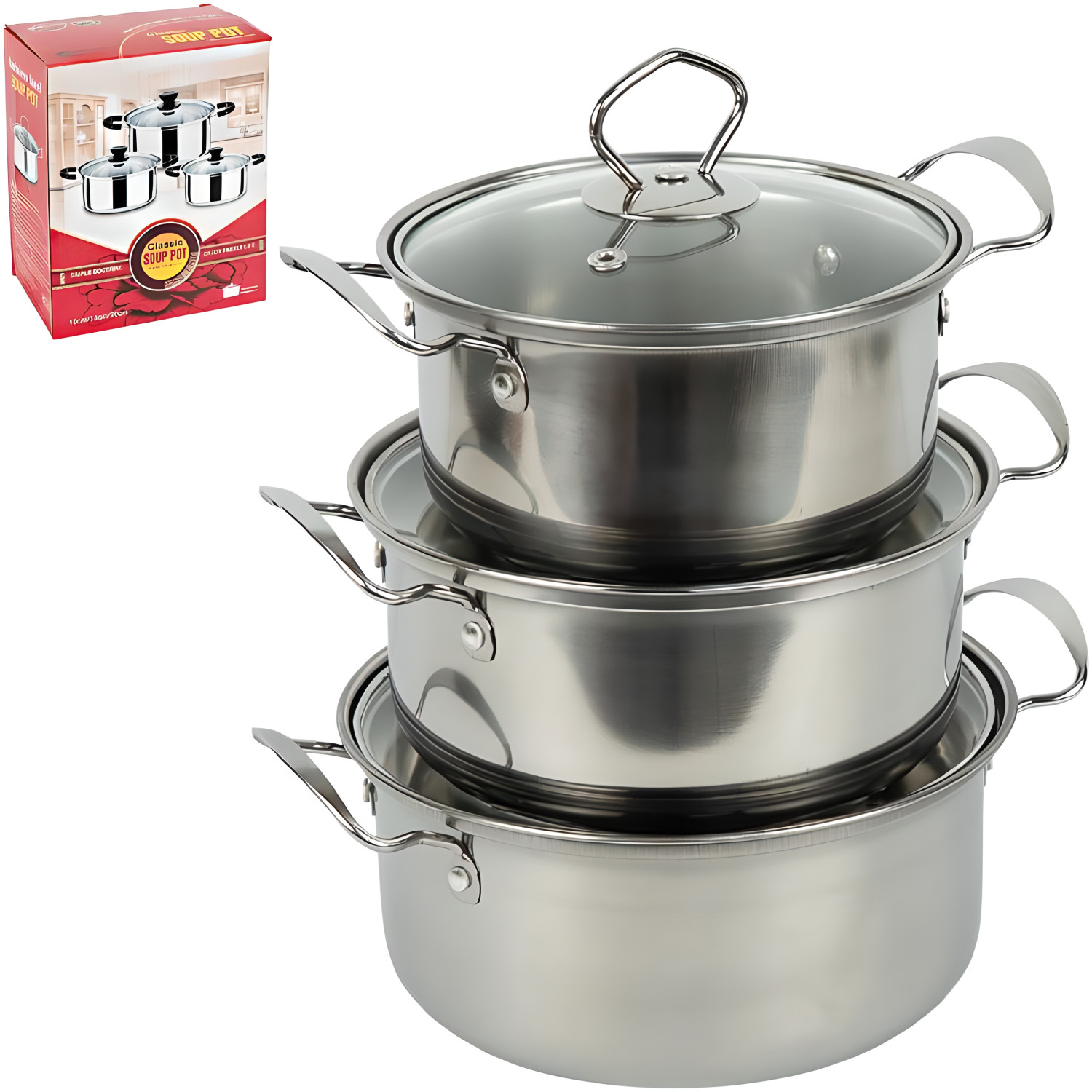 Набор кастрюль из нержавеющей стали 3 шт с крышками
