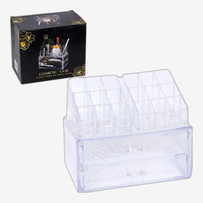 • Органайзер для косметики 18,5*11,5*15,5см 252-111 — купить в Китайке Органайзер подходит для хранения косметики, ювелирных изделий и кистей для макияжа. Изготовлен из бесцветного пластика, что позволяет видеть содержимое. Размер органайзера составляет 18,5 см в длину, 11,5 см в ширину и 15,5 см в вы...