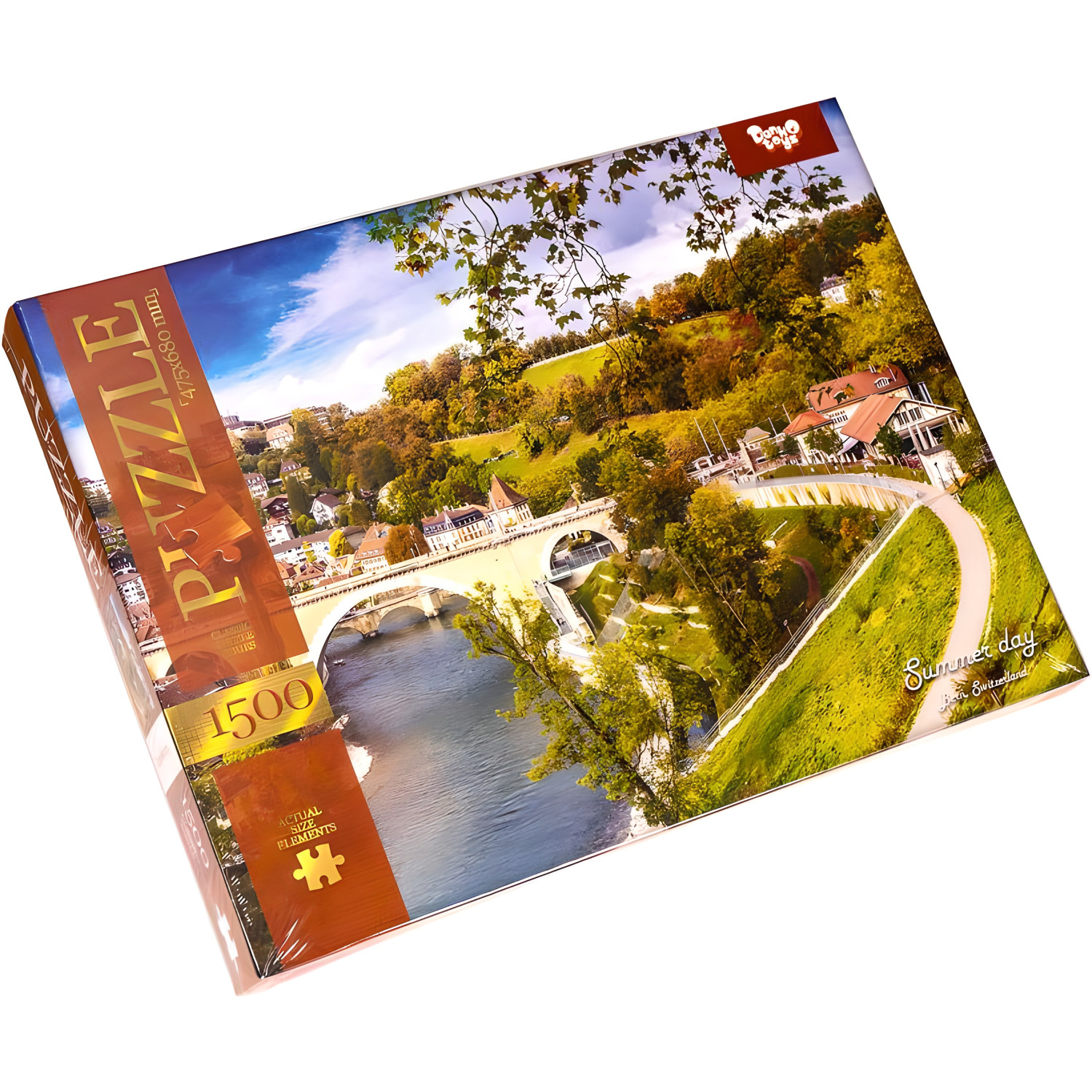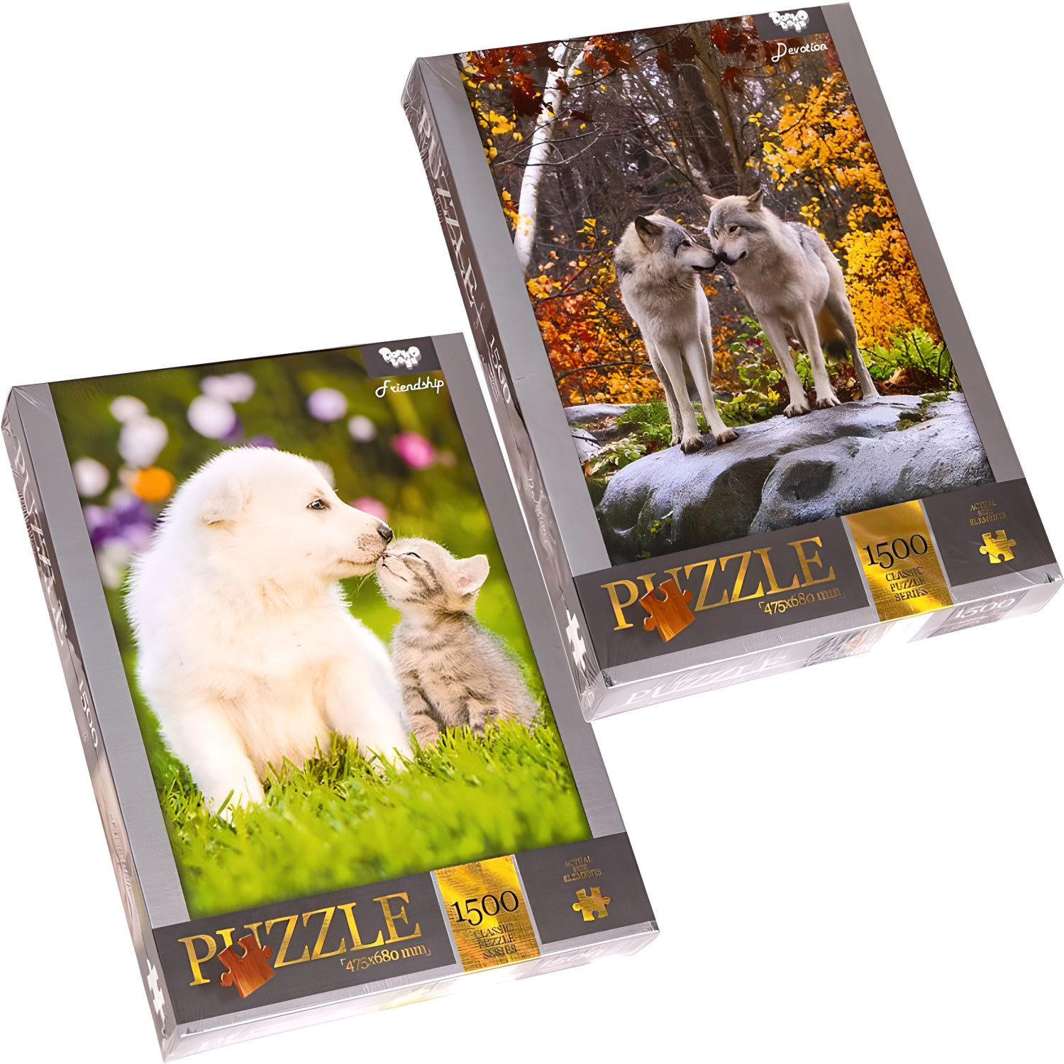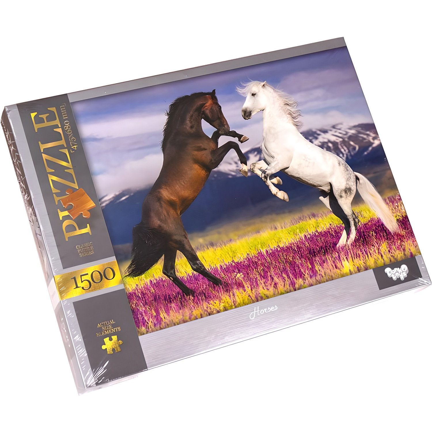 Пазл состоит из 1500 элементов, собранный размер которого составляет 680 х 475 мм. Изображения на пазлах представлены в разнообразном ассортименте.