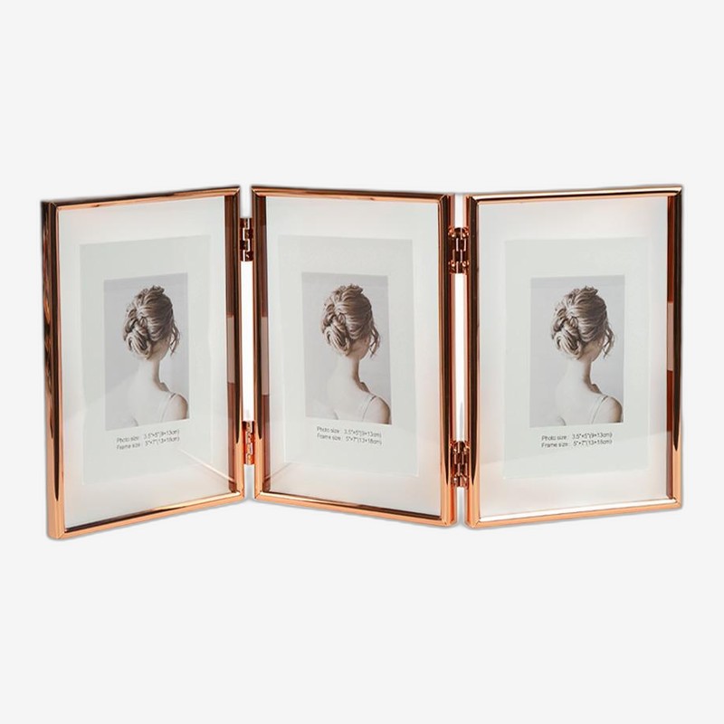 - Фоторамка металлическая на 3 фото 13*18 см Rose Gold 5R 12001T7R — купить в Китайке Металлическая тройная фоторамка на три фото 9×13 см, размер рамки 13×18 см, цвет — розовое золото, настольная, с шарнирным соединением, материал — металл. Элегантный и стильный аксессуар для оформления интерьера, по...