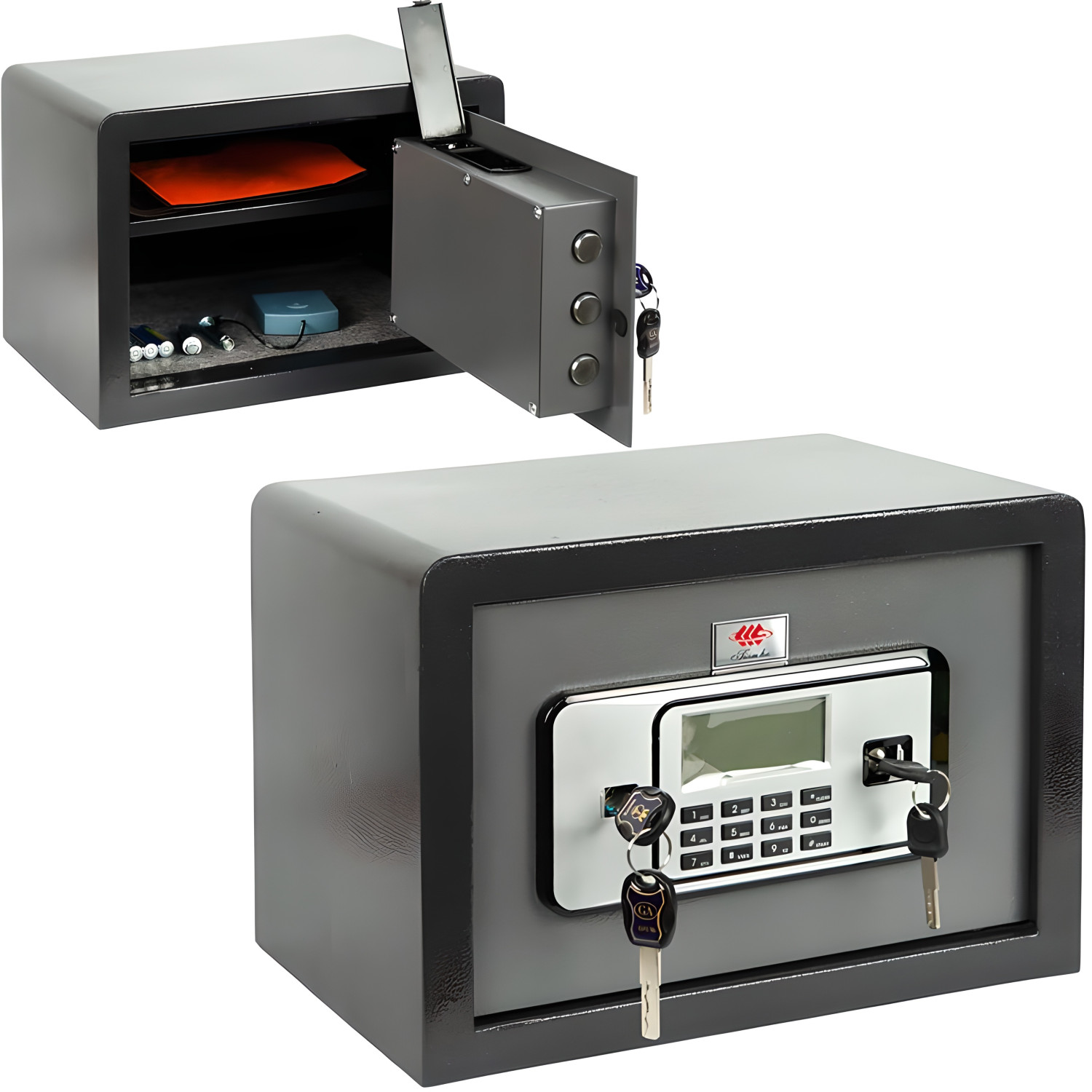 - Сейф D25 з електронним кодовим замком вирізняється збільшеним об'ємом для зберігання документів, ноутбука або коштовностей. Сталевий корпус стійкий до злому, кодова панель програмується під особистий PIN-код. Передбачено отвори для кріплення до меблів або стіни.