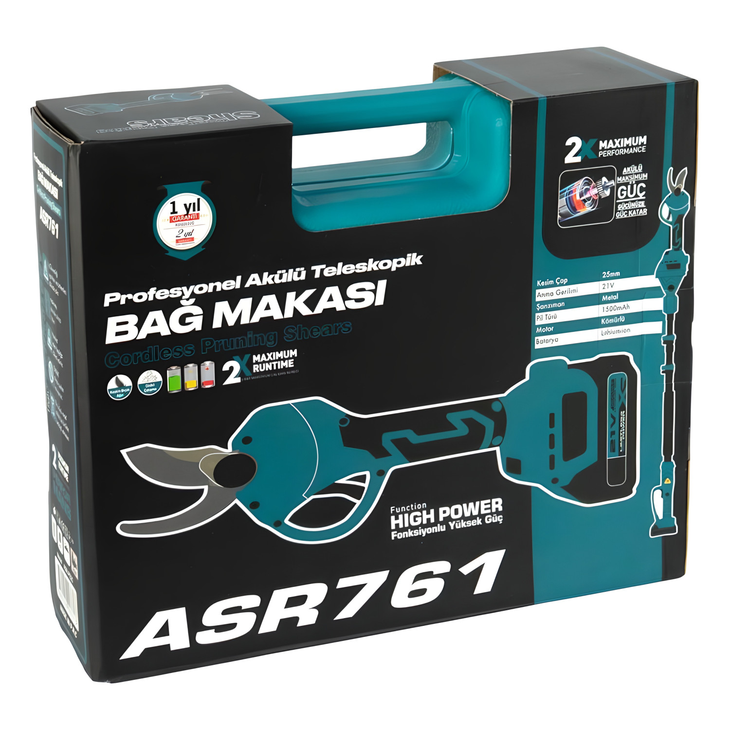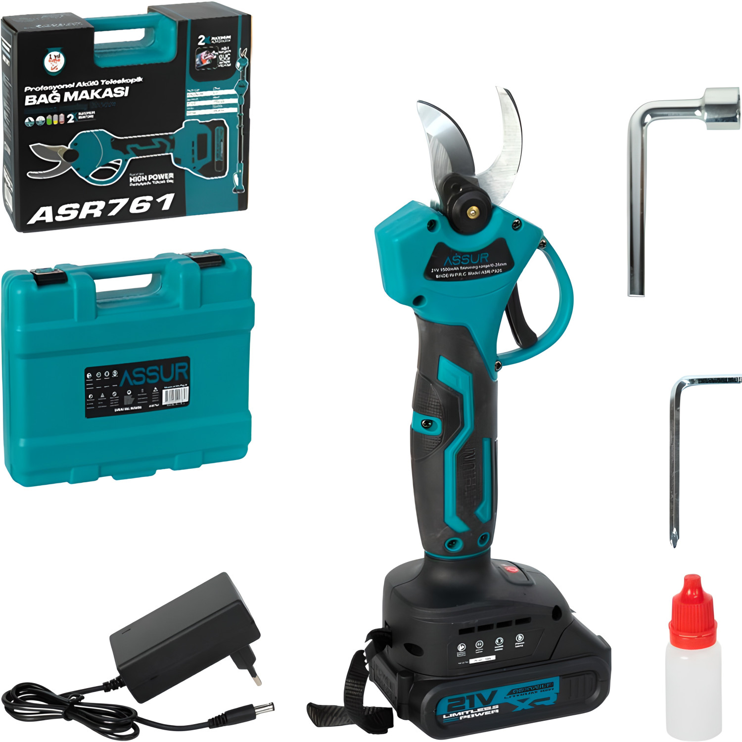 Аккумуляторный секатор 21V, срез до 25 мм, батарея 1500 mAh, кейс + коробка (ASR768/761) — описание и характеристики