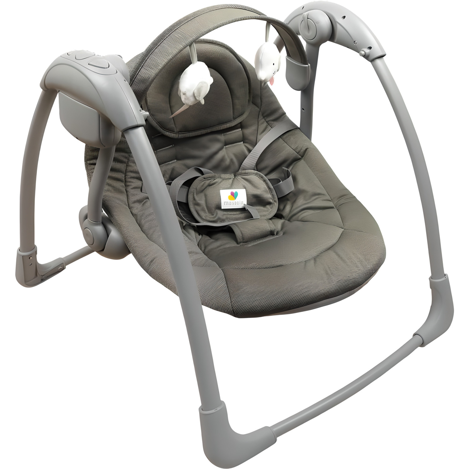Детский убаюкивающий центр, 3–11 кг, 5 скоростей качания, 7 мелодий, вибрация (Mastela 6599) серый — описание и характеристики