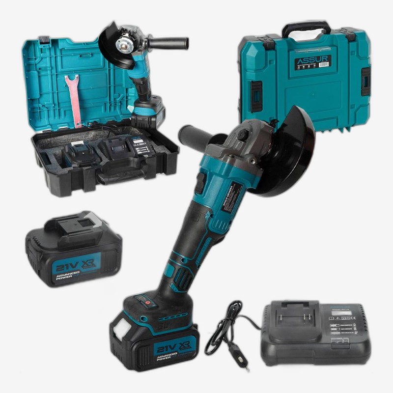 Аккумуляторная угловая шлифмашина 125мм 21V, 2 аккумулятора, в кейсе (ASR319)