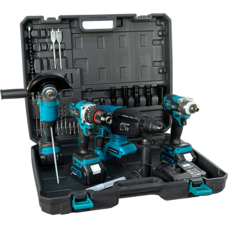• Аккумуляторный набор инструментов 4-в-1, бесщёточные, 21V (ASR1011) — описание и характеристики Аккумуляторный набор 4-в-1 объединяет четыре бесщёточных инструмента: электрический гайковёрт с крутящим моментом 300 Нм, углошлифовальную машину 125 мм, перфоратор 26 мм и ударную дрель 13 мм. Комплект п...