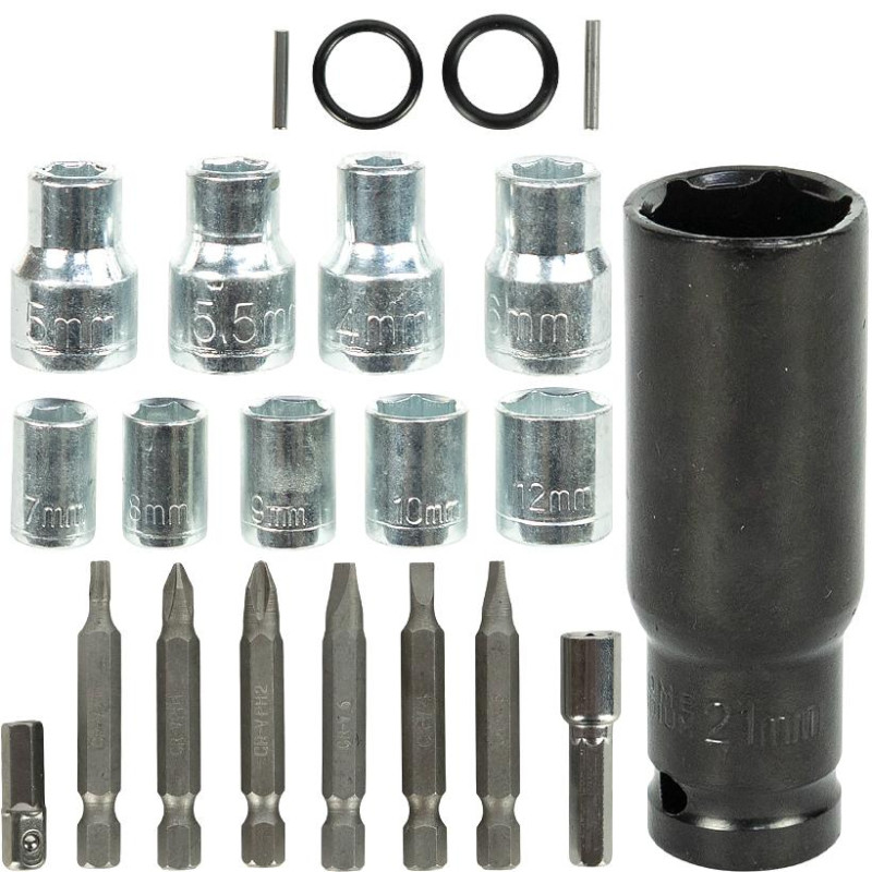 • Аккумуляторный набор инструментов 6-в-1, 21V, бесщеточный 4 аккумулятора, в кейсе + коробка (ASR1106) — описание и характеристики Многофункциональный аккумуляторный набор инструмента 6-в-1 предназначен для строительных, монтажных и ремонтных работ. В комплект входят: бесщеточная угловая шлифмашина 1...