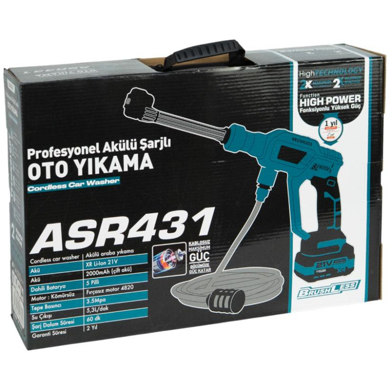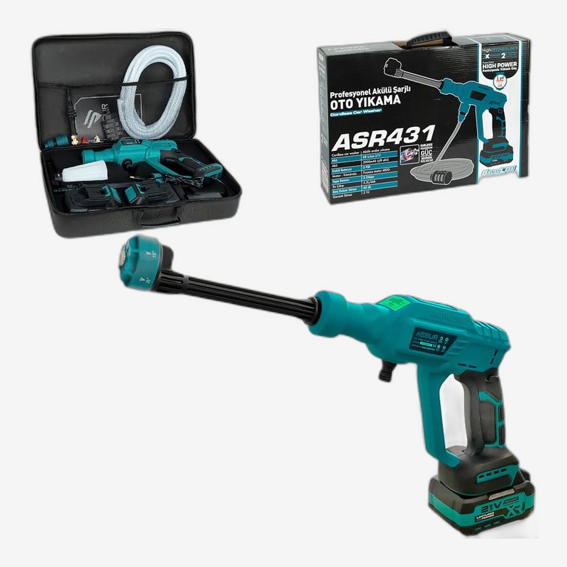 - Аккумуляторная мойка высокого давления 21V для авто, с комплектом аксессуаров в сумке + коробка (ASR431) — описание и характеристики Аккумуляторная автомобильная мойка предназначена для удобной и эффективной очистки автомобиля, мотоцикла, садовой техники, фасадов, дорожек и других поверхностей. Рабо...